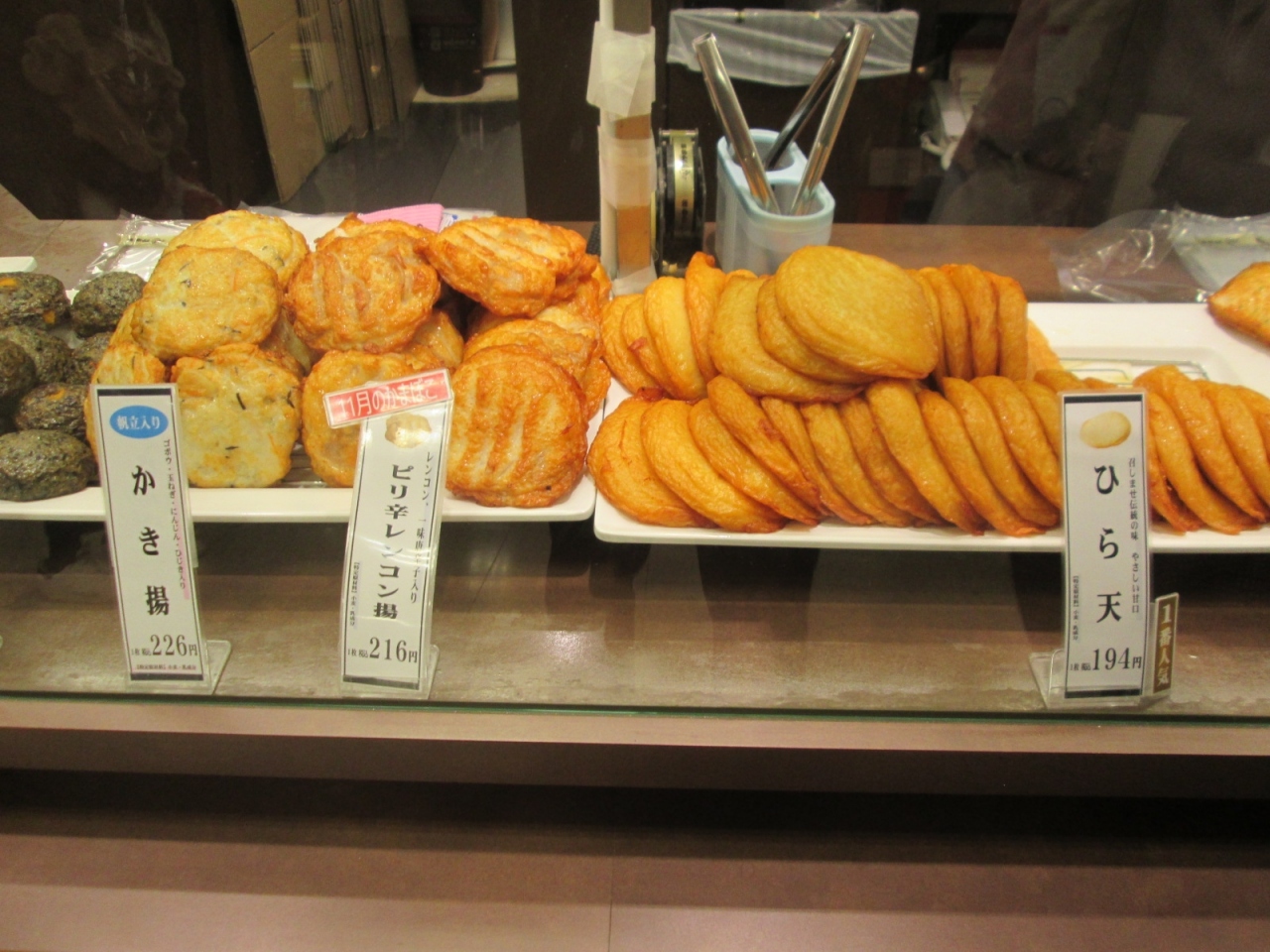 蒲鉾は店内で揚げているため暖かく、いろいろな味があり1個ずつでも買えるので、好きなものを必要なだけ買うことができます。