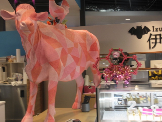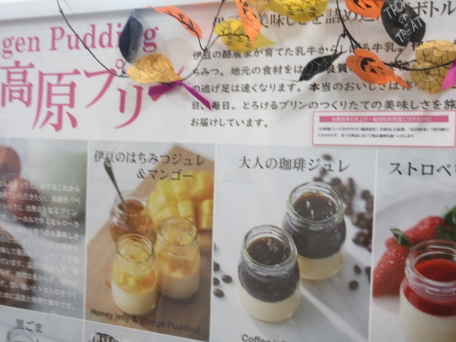 伊東にある道の駅のマリンタウンの中にあるお店の一つです。伊豆高原でゆうめいなプリンのお店で、かわいらしい雰囲気のお身ででした。牛のオブジェがあったりハロウィーンの装飾がしてあったりました。瓶に入ったプリンでかわいいし、おいしいのでお勧めです。味(ソース)も選べてたのしいですよ。