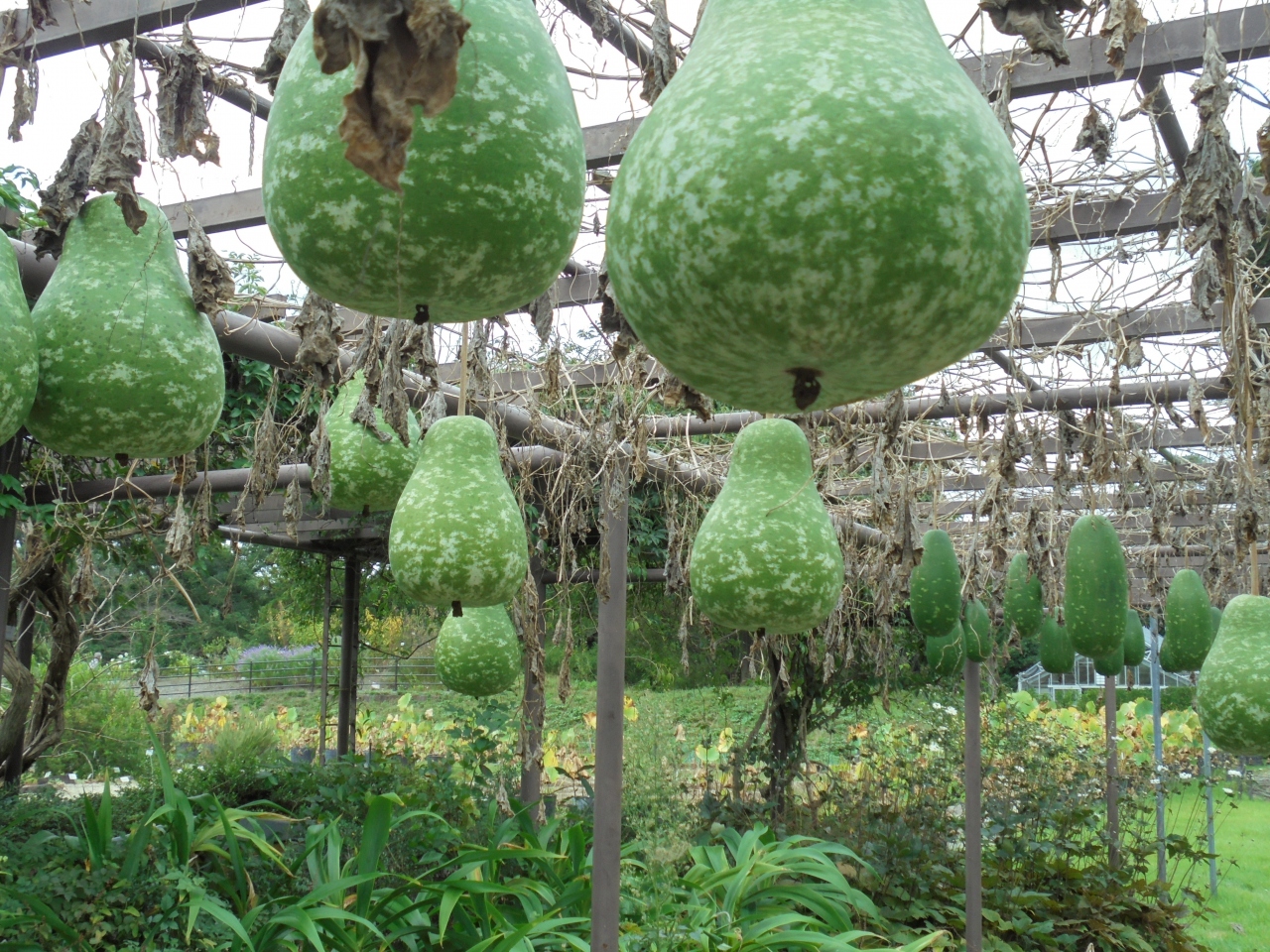 広くて、全部回り切れなかったです。花壇には美しい花々が咲き、観覧温室前の池では水連の花も咲いていました。少し歩くと、蛇のようなひょうたんがなっているアーケードもあります。観覧温室はテーマごとに建物が分かれていて、工夫された展示でわかりやすかったです。今回は下見を兼ねての入園。次回は、家内と一緒にゆっくり観覧してみるつもり。