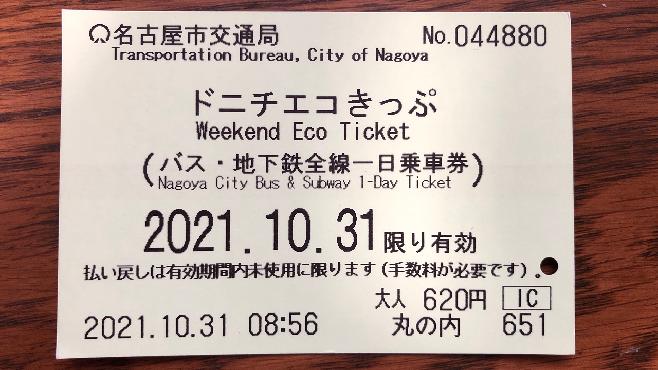 東山線・鶴舞線・名城線・名港線・桜通線などが走っています。土日・祝日には、ドニチエコきっぷが620円で売られています。地下鉄の他、市バスにも1日乗り放題で620円です。地下鉄駅の端から端まで乗ると、300円を超える区間もあるので、ドニチエコきっぷがお得です。