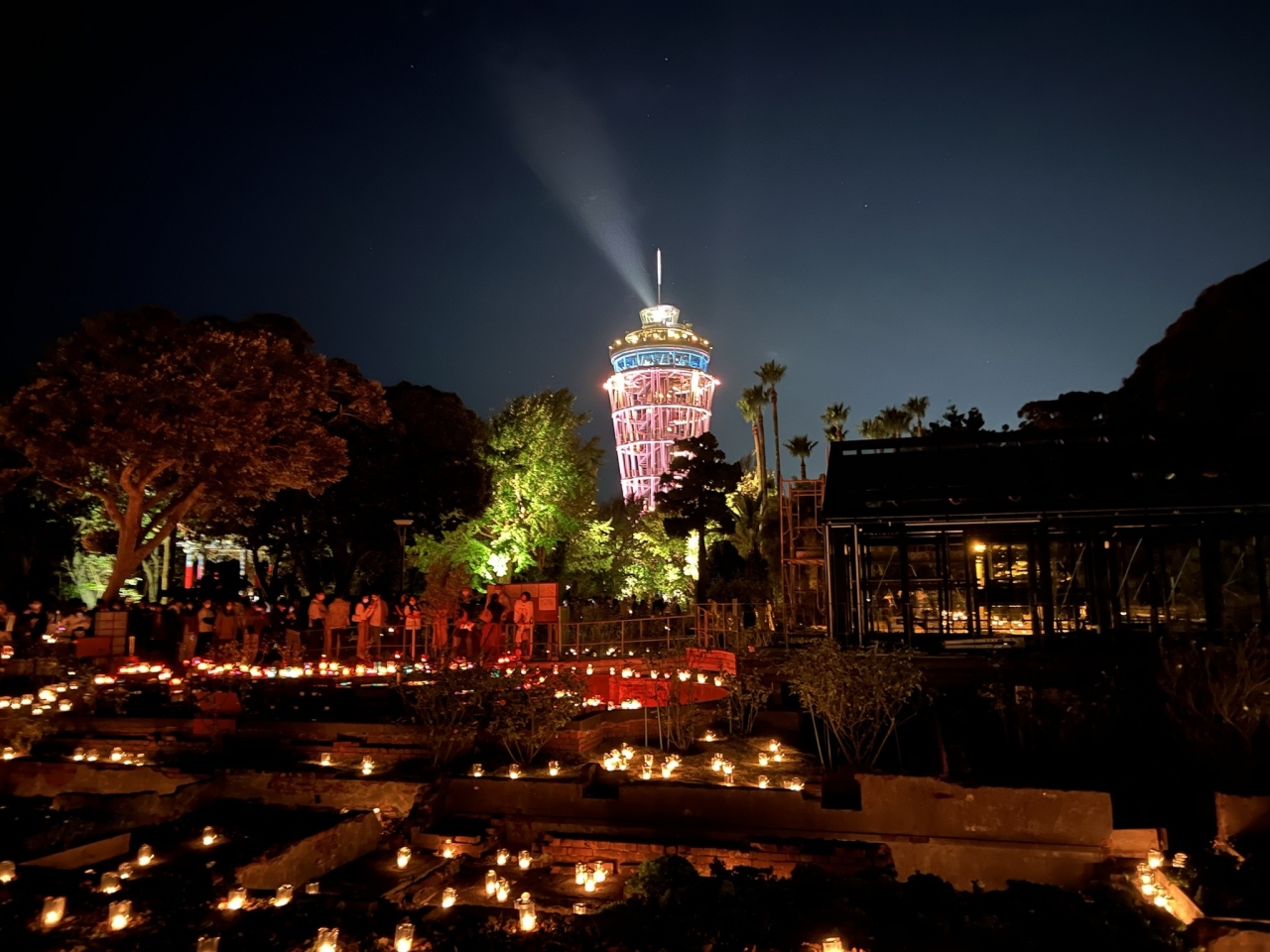 江の島のサムエルコッキング苑で10月に行われるイルミネーション・イベントが湘南キャンドル。約1万個のキャンドルで、苑内が飾られるます。