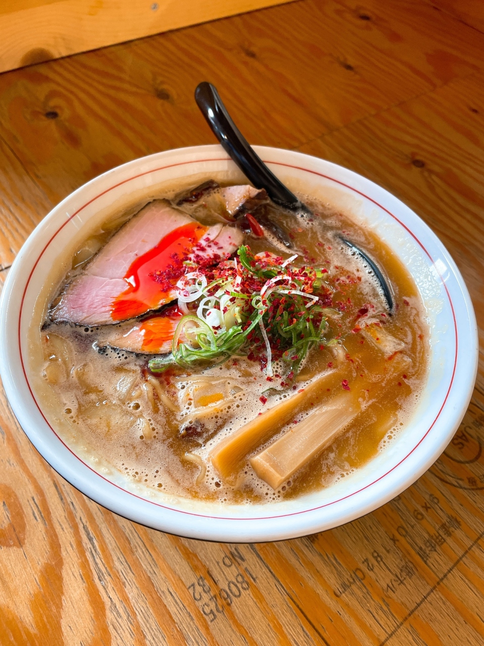 玉ねぎの香りよくチャーシューのわら焼の香りがたち美味しかったです。
