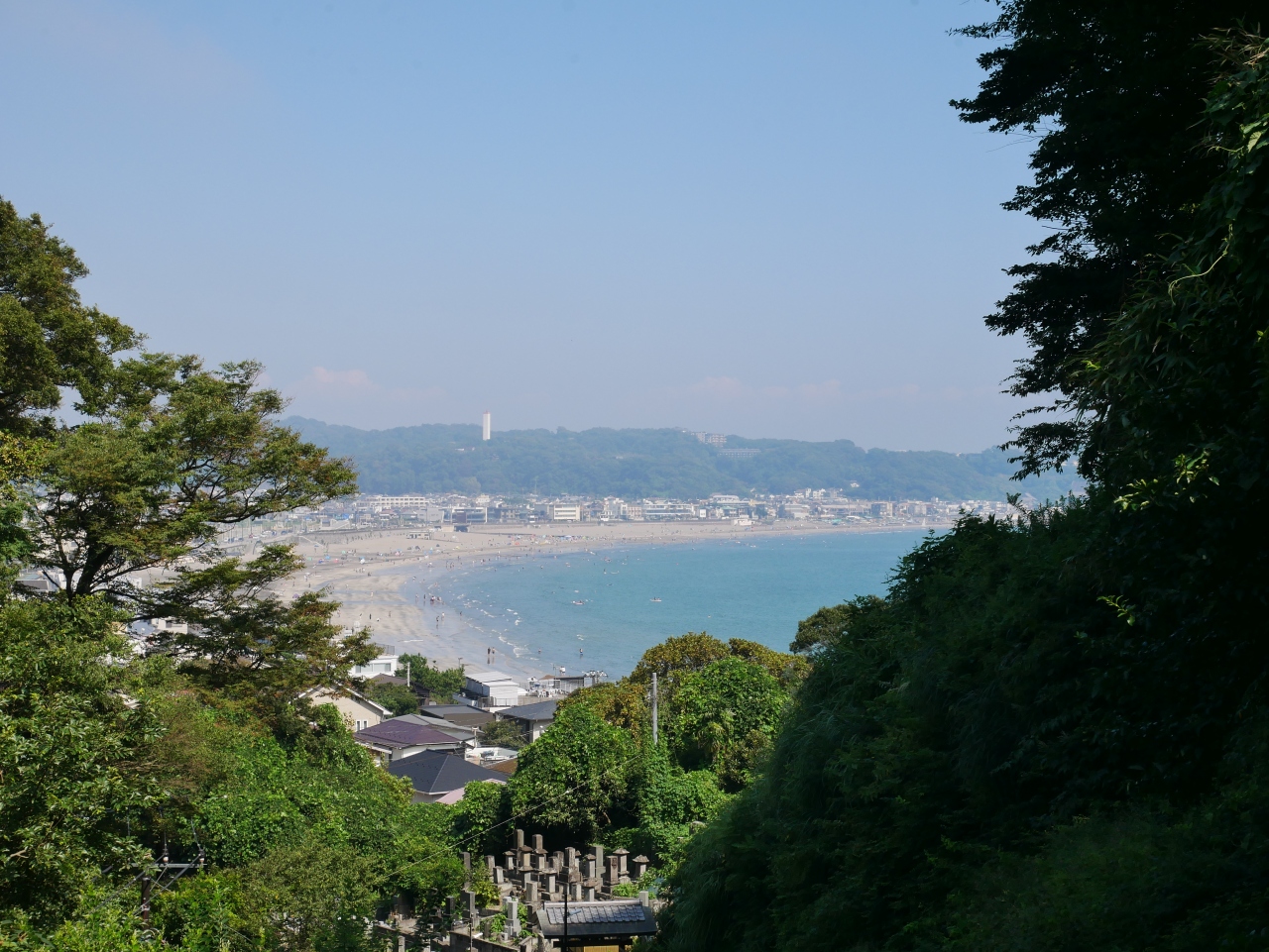 江ノ電極楽寺駅近くの高台にあるお寺。駅からお寺の長い階段をあがっていくと、景色が開けて由比ガ浜を一望することができます。