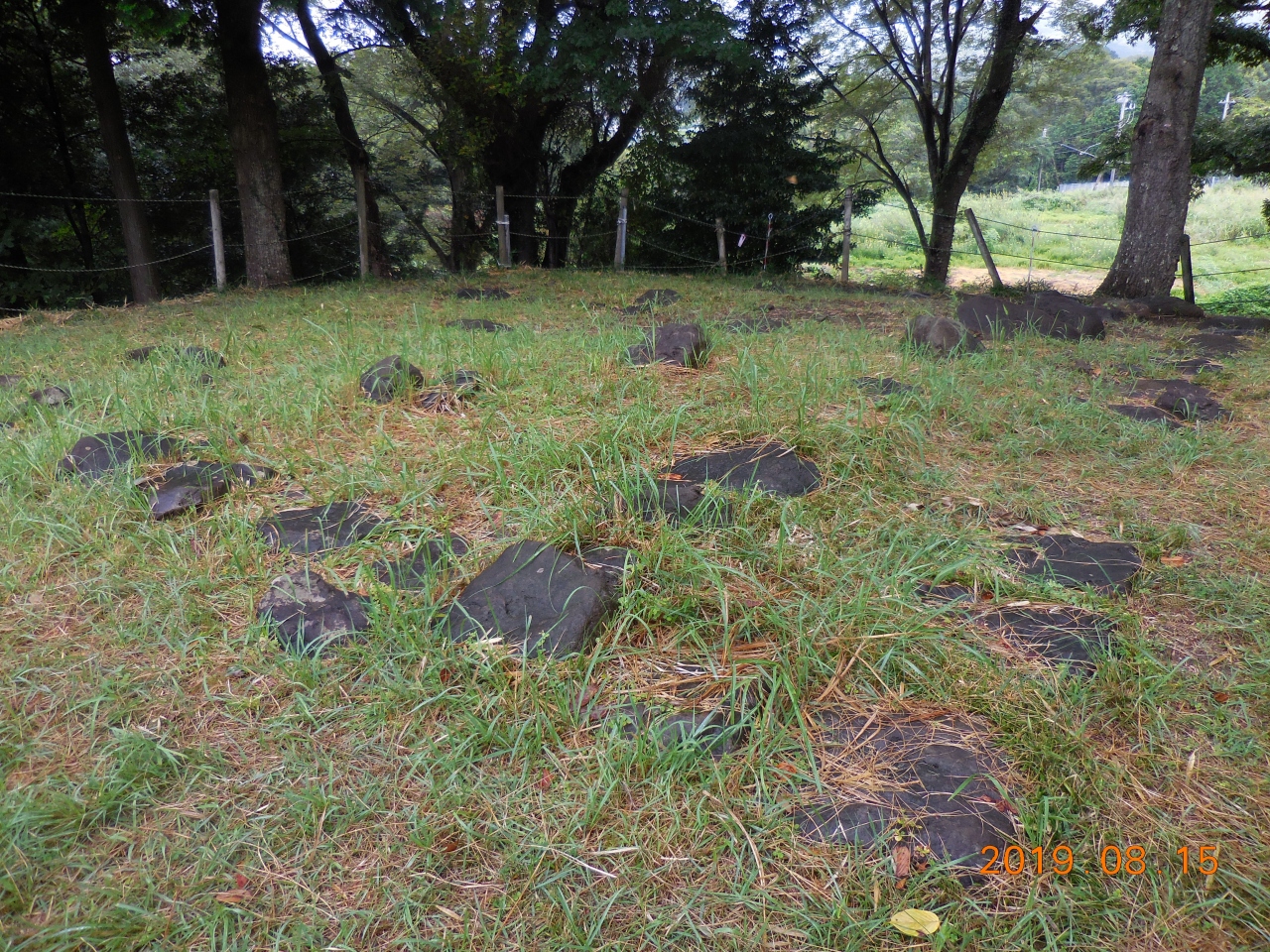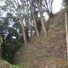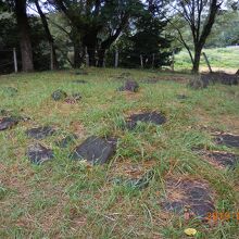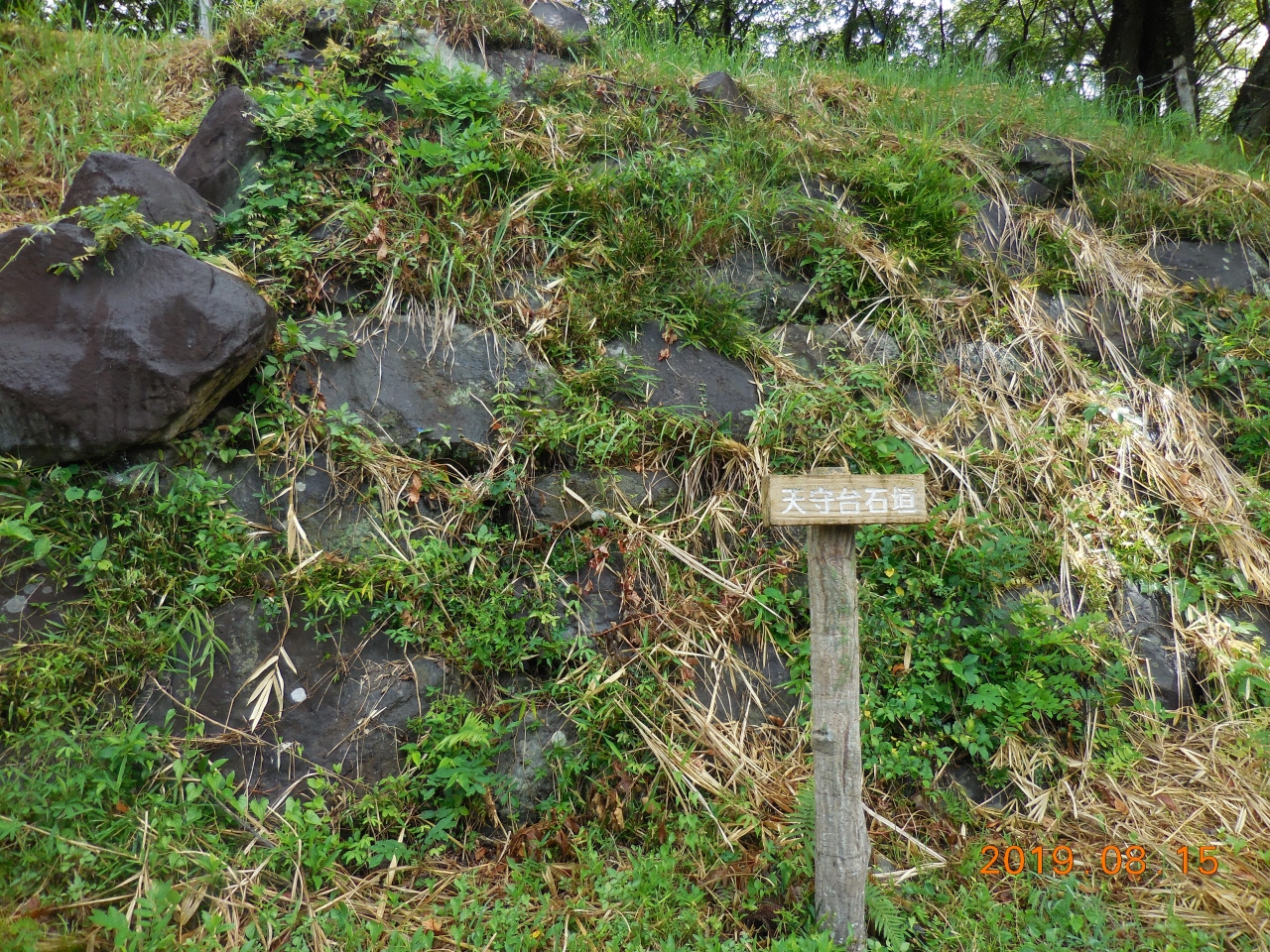 奥へ行くと、大きな本丸土塁。天守台には、礎石も。