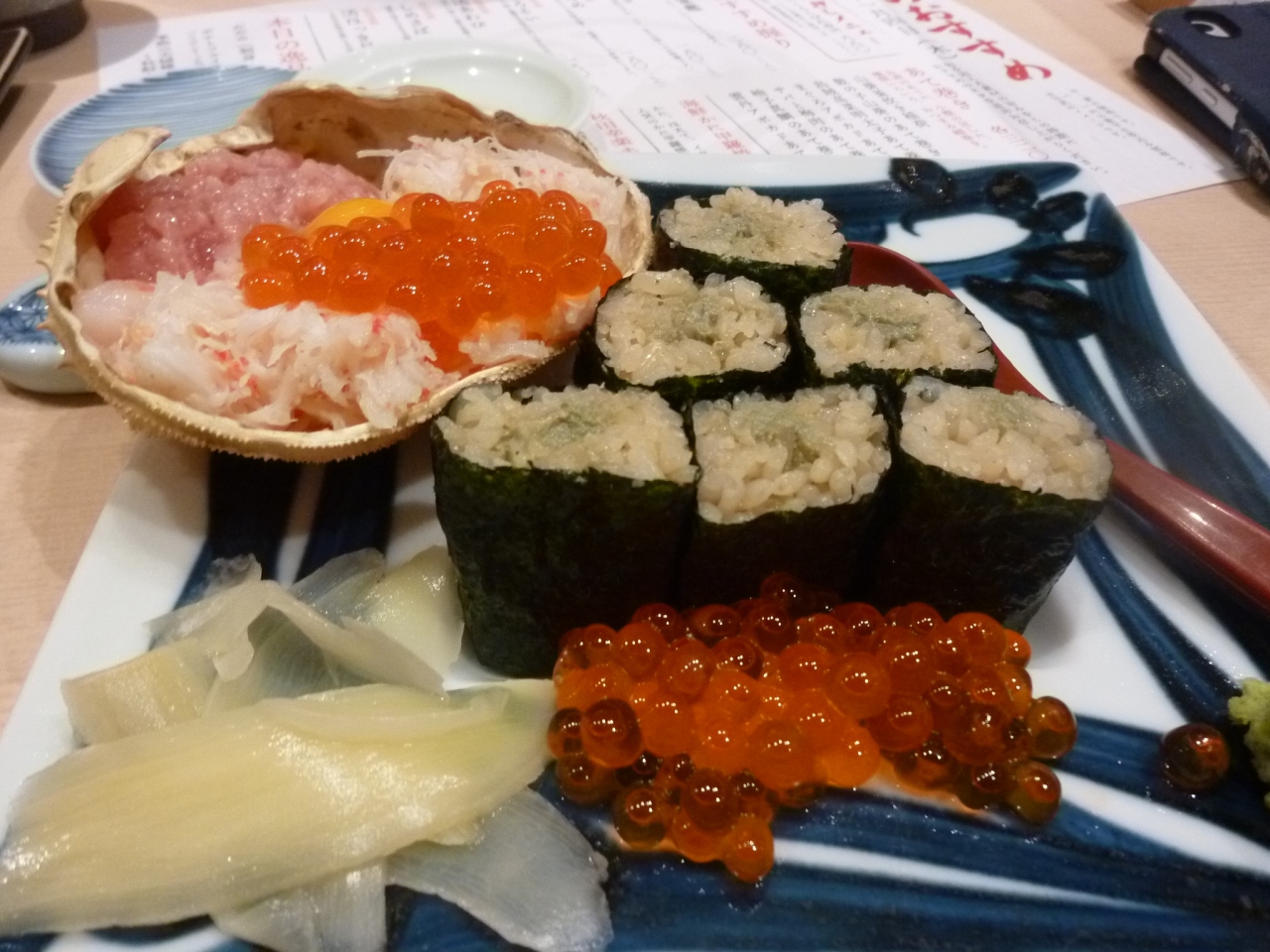 知り合った旅行者に、ここが美味しかったと進めてもらい、行ってみました。シャリは赤いです。小ぶりで上品な炙りえんがわ、ぼたんエビ。おいしかったです。ウニとアボガドのあて巻は普通かな。こぼれ寿司は本当にこぼれていて満足でした。