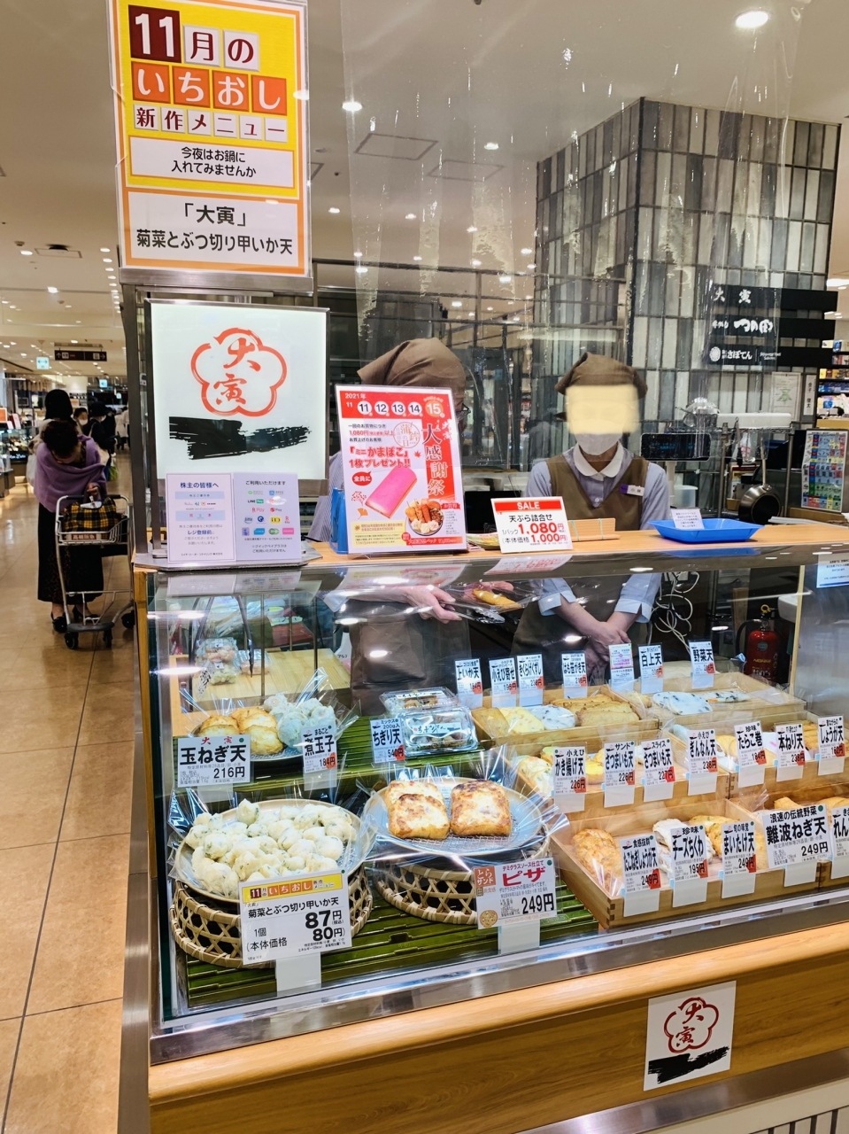 11月のいちおし 新作メニューは 「菊菜とぶつ切り甲いか天」だそうです。