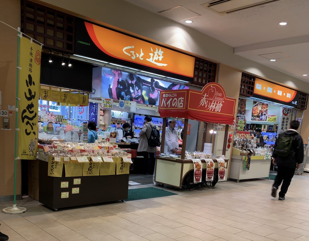 青森駅構内のぐるっと遊に常設なのかは分かりませんが、「青森りんごのパイの店 赤い林檎」と店名が書かれていて青森駅から1㎞ほど離れた場所(青森市新町2-6-15)に店舗があるそうです。