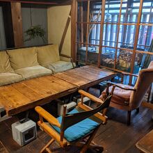 ならまちからは少し離れた場所にあるため静かでした。築150年の建物を利用したカフェは店の中央に大きなテーブル、ソファ席、カウンター席とありとっても居心地が良くあっというまに時間が過ぎてしまいました。注文したクレームブリュレがとってもおいしく必ずリピートしたいです。
