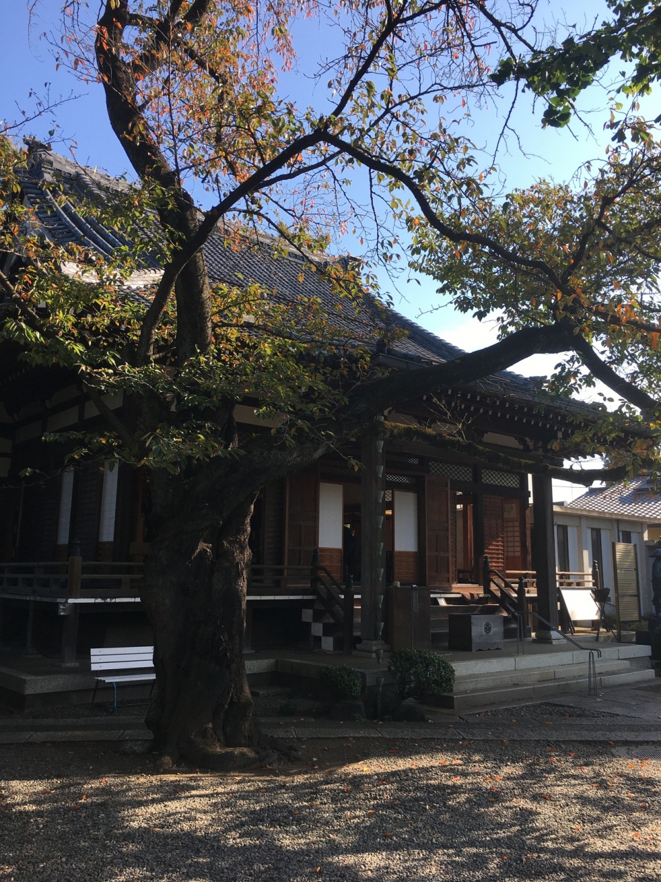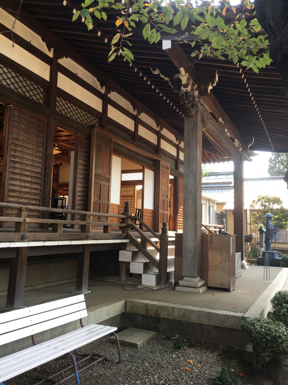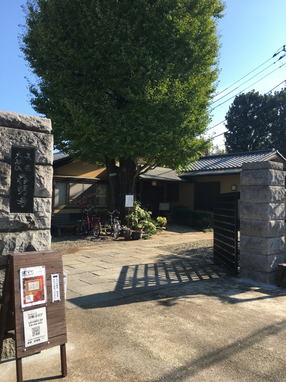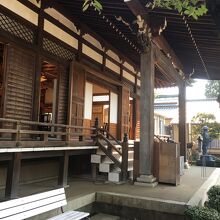 境内入ると緑の木が茂る大きな木が目立っていました。社務所のような建物があり、その左が本堂でお坊さんの像が建っていました。砂利にはなっていて、壁沿いには今でも利用されていそうな井戸が良い雰囲気でした。本堂の前にベンチがあって休むことが出来ます。