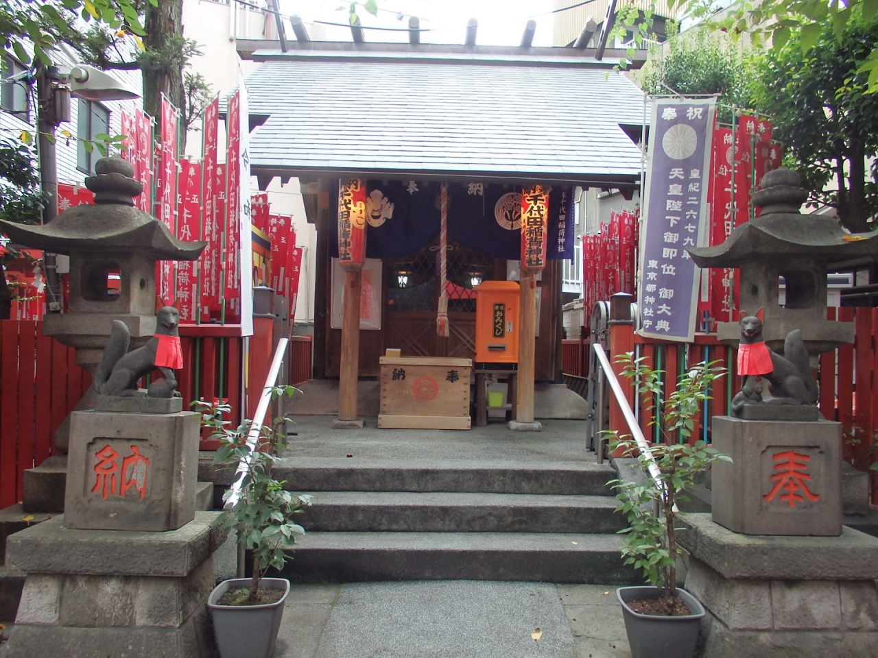 太田道灌が江戸城を築城した際、守護神として京都伏見稲荷を勧請したのが始まりとされる神社です。鳥居を潜ると拝殿、本殿、境内社中川稲荷神社があります。人通りの多い道玄坂、ランブリングストリートに挟まれた場所にあります。百軒店付近は多くの人がいましたが、神社に近づく小路には一人も出合わない静かな神社でした。ひっそりとしていて、寧ろ怖いくらいに感じる神社でした