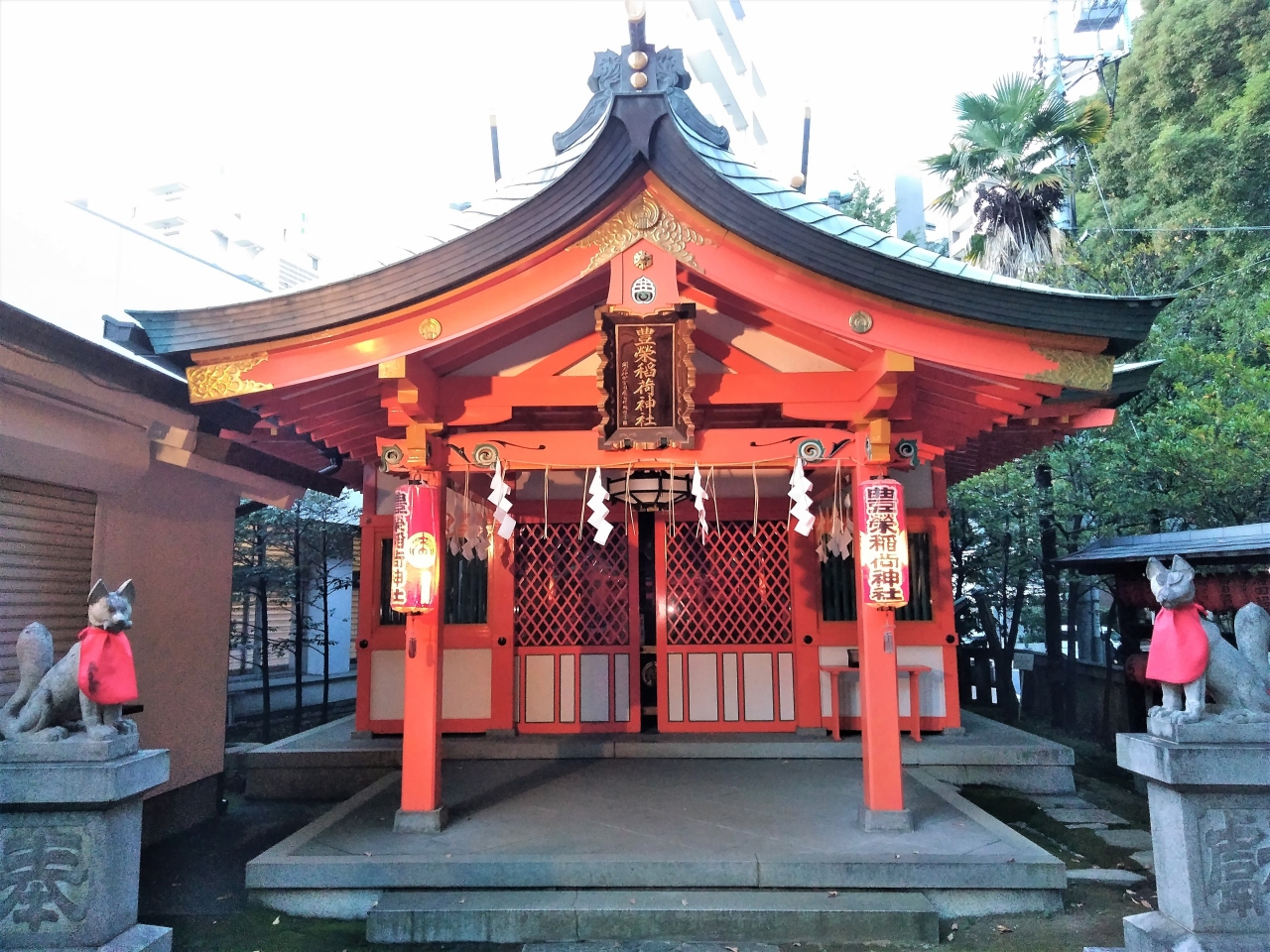喧噪の明治通りから路地を少し入ったところで、金王八幡神社の横にある稲荷神社です。