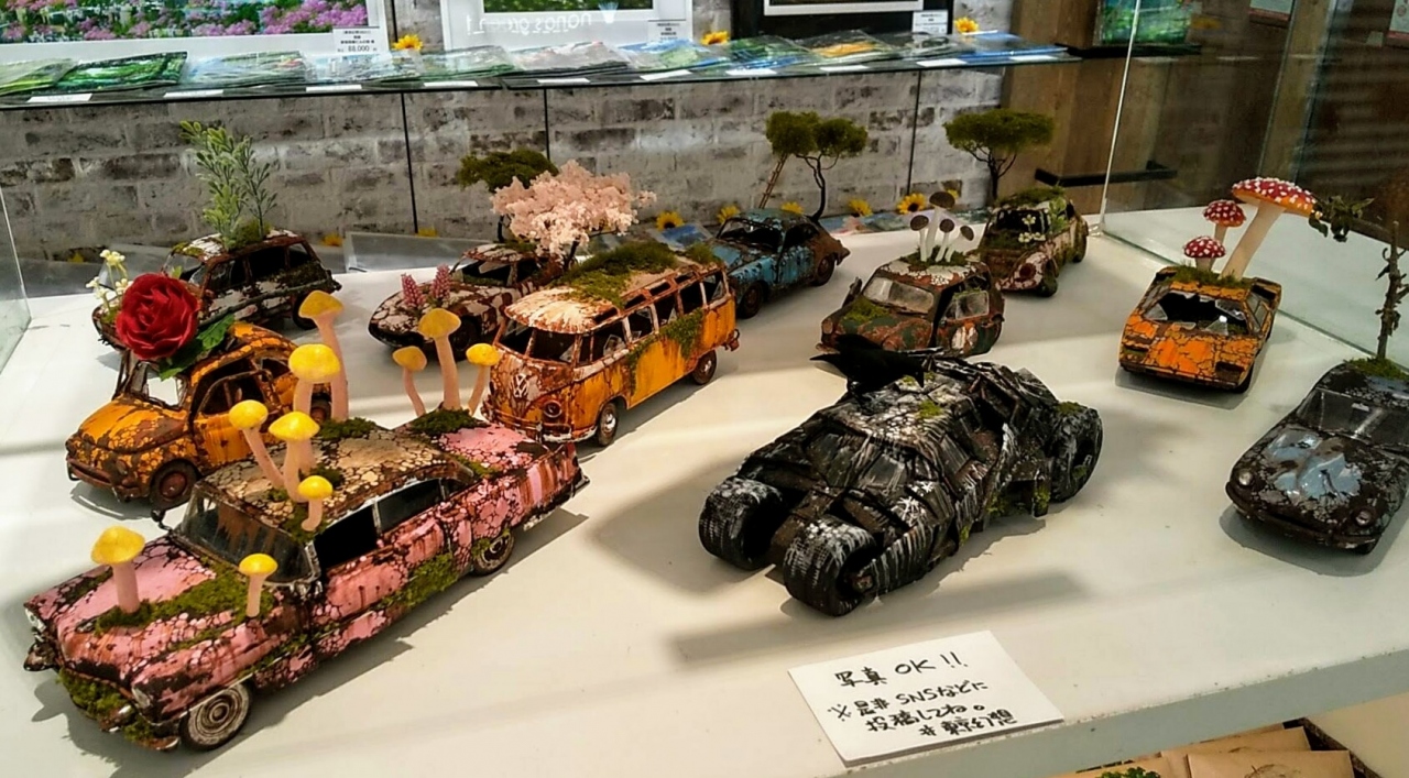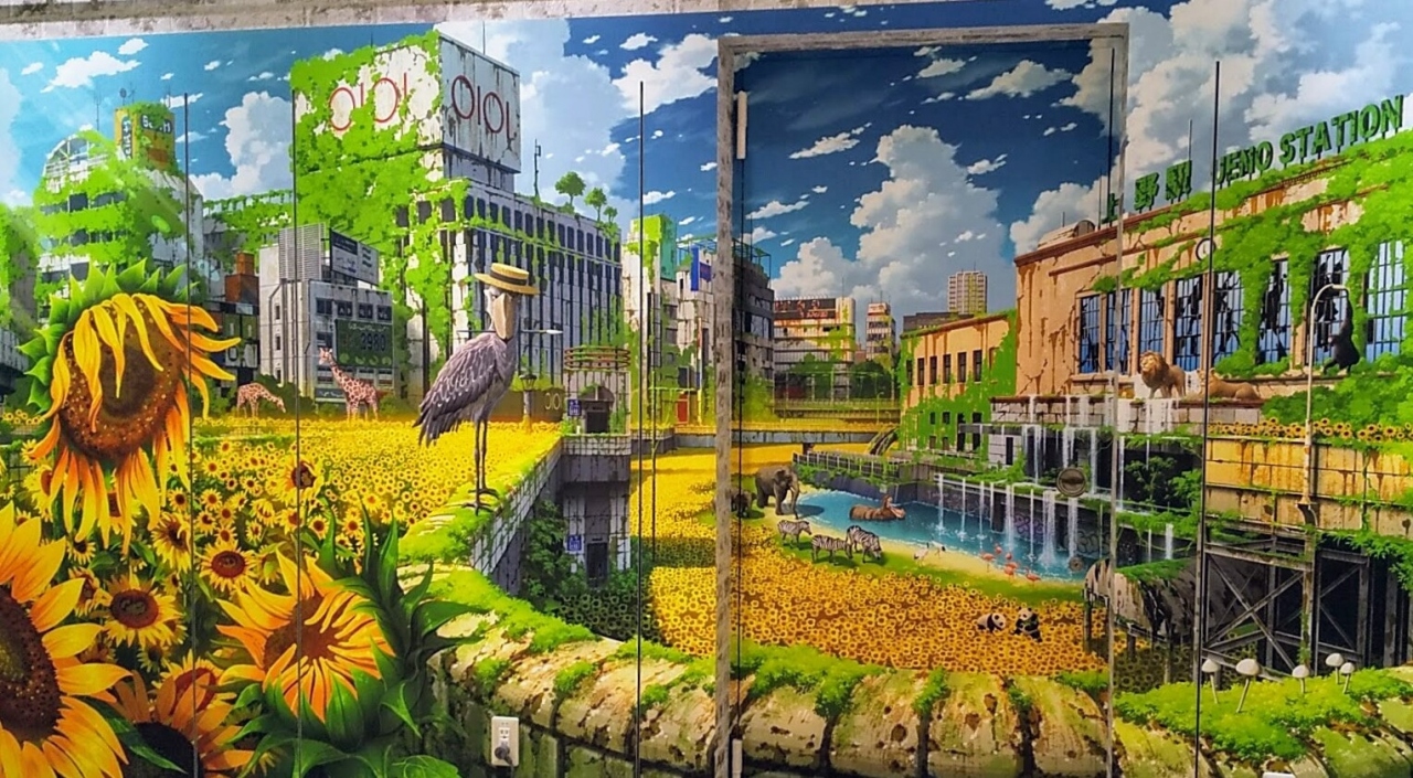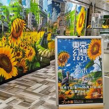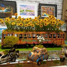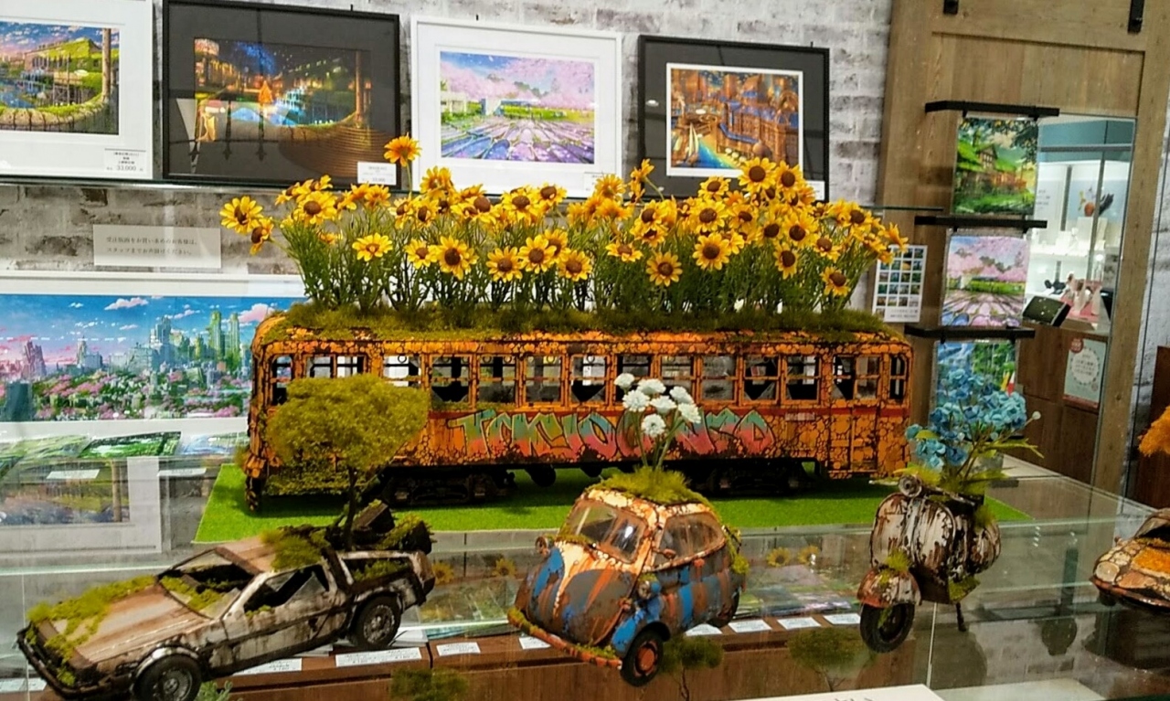上野駅前がひまわりで緑化され ゴッホを連想する麦わら帽子に絵筆を咥えたハシビロコウがいる『上野駅幻想ひまわり』や不思議な植物が生えている廃車アートの展示、アート作品やグッズの販売もありました。