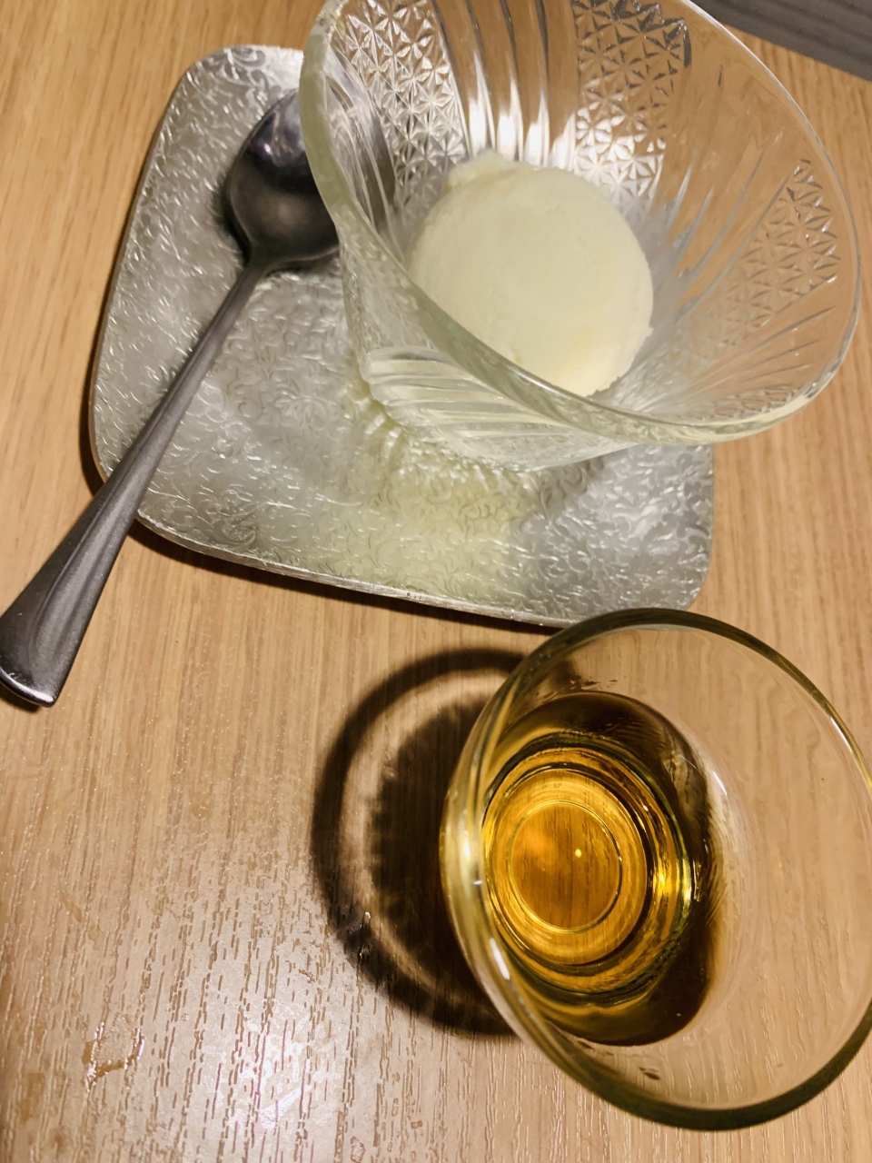 本当なら抹茶アイスだったのに、ウイスキーに合わせるってことで バニラに 変更してくれました。