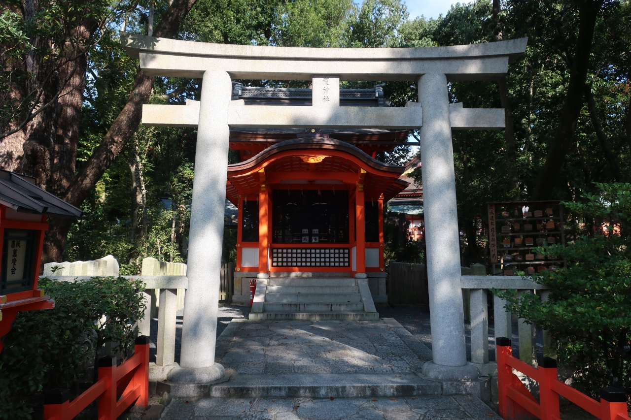八坂神社の西楼門をくぐると正面に建っています。太田社と並んでいますよ。ご祭神は蘇民将来命です。疫病退散の御利益がある神様として信仰されています。こんなご時世なので、しっかり参拝してきました。夏越祭には茅輪くぐりを行うことで有名です。