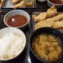 5種類の天ぷらを味わえる天ぷら定食にやまやの明太子天を追加でオーダーしました。