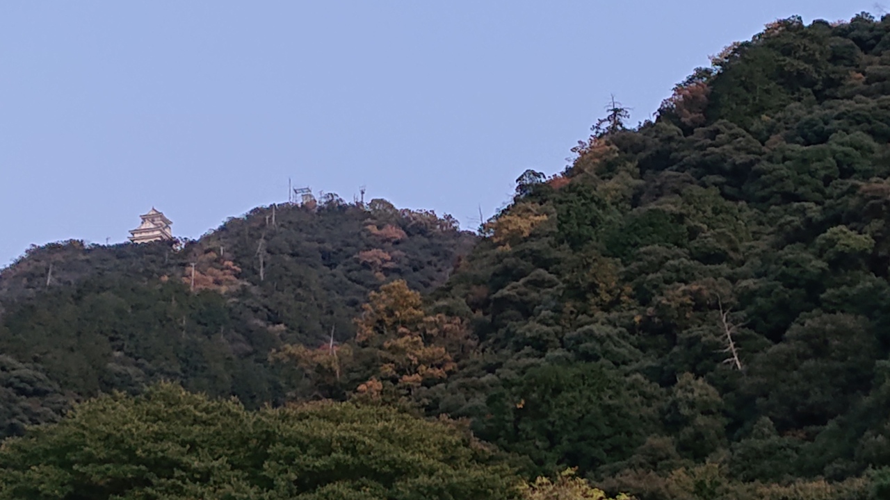 11月上旬の、日曜日の夕方に訪問しました。金華山は、まだ見頃前な感じではありましたが、紅葉し始めの状況でした。それゆえ、麓から眺めると、紅葉していない木の緑のなかに、ポツポツと紅葉した木の黄色が見受けられるといった感じの景色でした。
