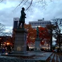 夕暮れ時だったので、どちらがケプロンの像なのの、迷ってしまいました。