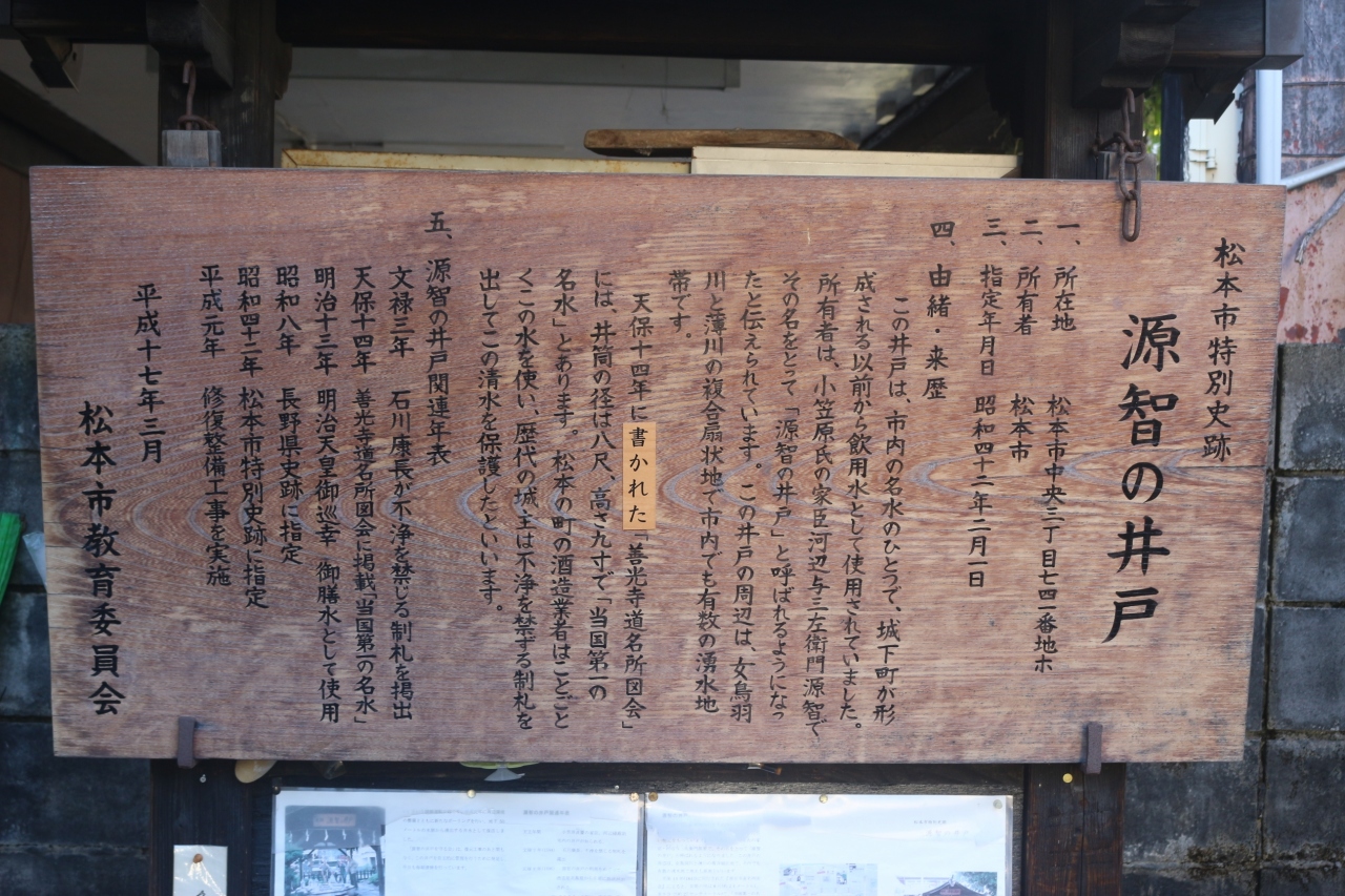 説明板によれば、豊臣秀吉の時代(文禄時代)、松本城が作られた時代から存在していた井戸のようです。