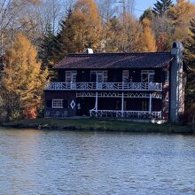 塩沢湖の湖畔に美しく佇む館は、ジブリ映画で見かけた気がします。