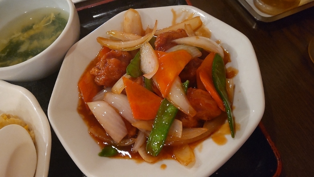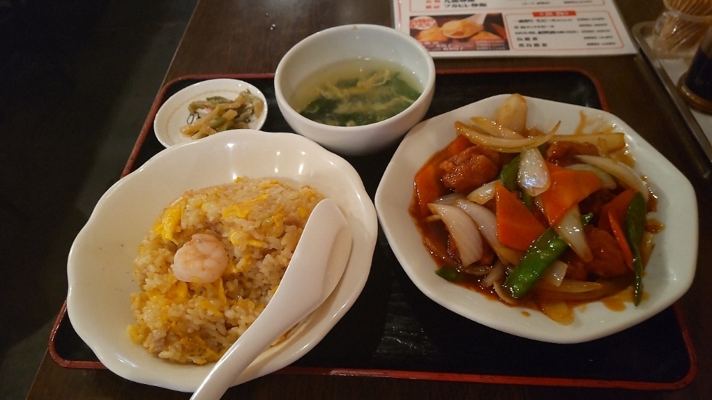 エビチリや麻婆豆腐もいいが、酸っぱい物が食べたいので、酢豚と五目炒飯のセットを注文した。