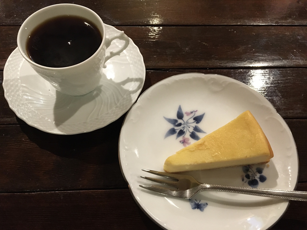 地下一階にお店があります。バーのような落ち着いた雰囲気です。祝日の17時過ぎに来店。一番人気というカボチャのムースは残念ながら売り切れでした。チーズケーキ(500円)とトロワブレンド(600円)をオーダーしました。チーズケーキは小ぶりなサイズでしたが、もうちょっと食べたいなと思わせるくらいが丁度いいのかもしれないです。訪れた時間が夕方だったので、チーズがたっぷり乗ったトーストを食べている人が多かったです。