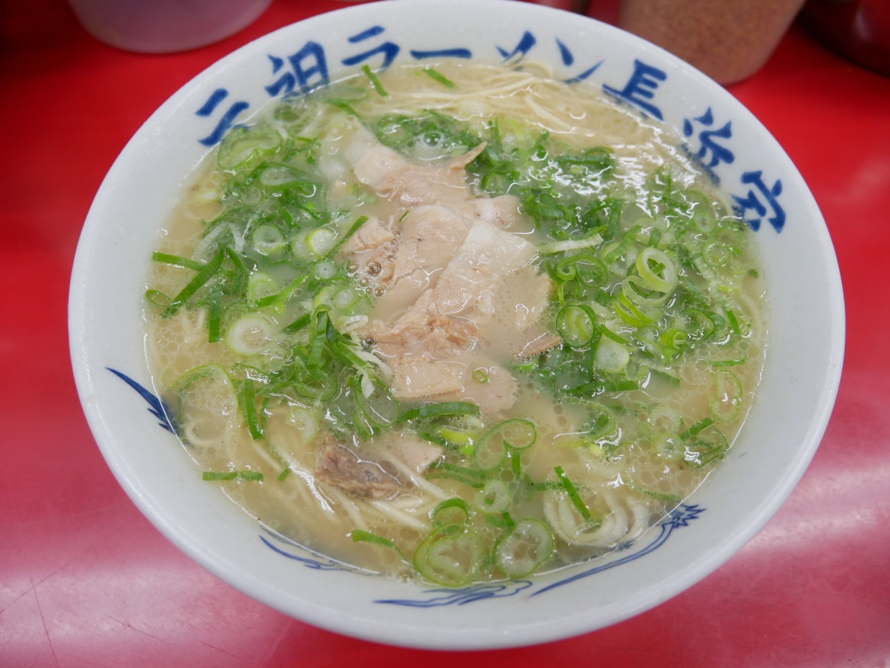 中州川端にある長浜ラーメンのお店。安い、早い、美味いを並べたお店で、どちらかというとあっさりの細麺。夕食後の〆のラーメンにもぴったりです。