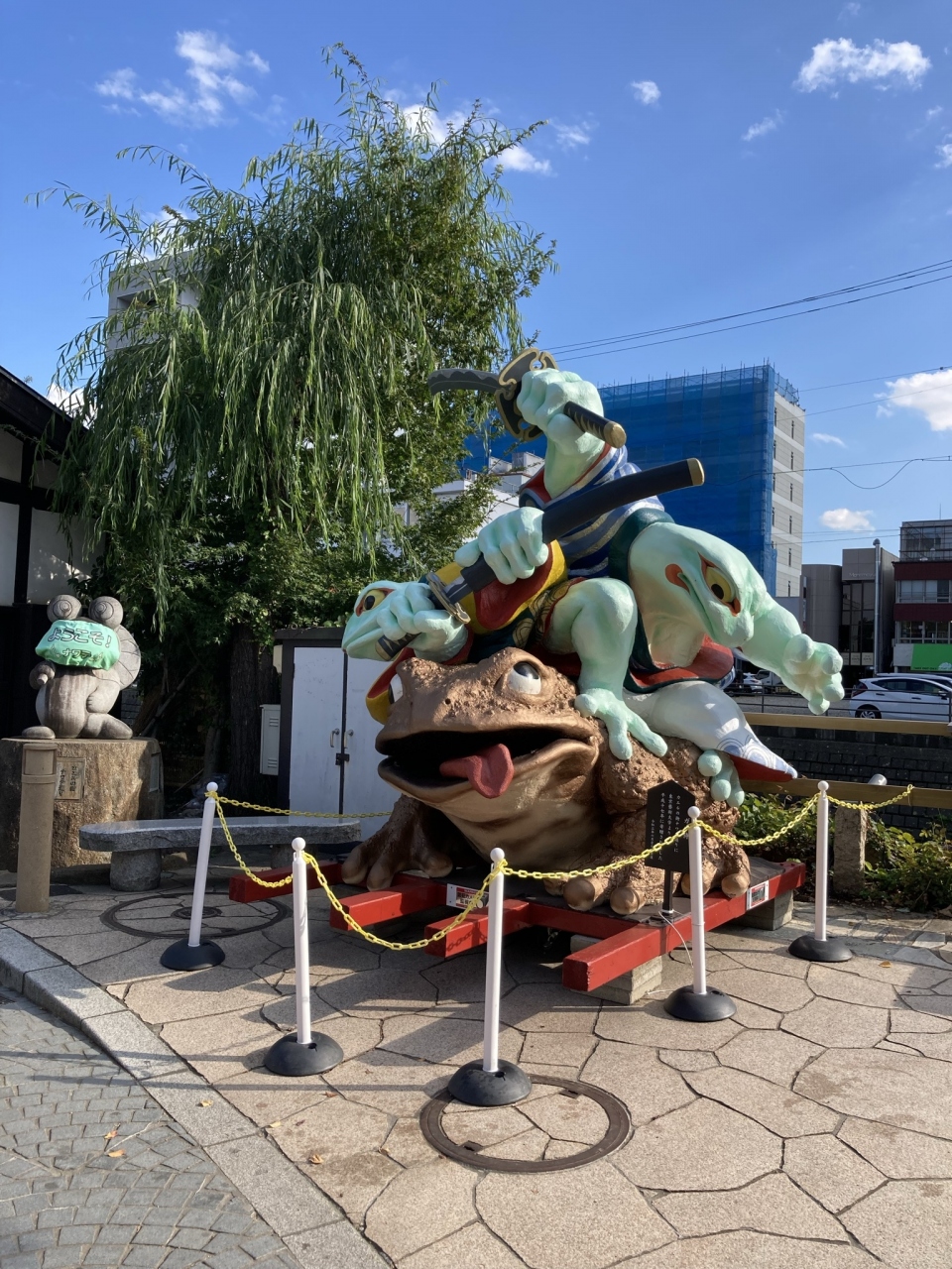 縄手通り入口付近にある蛙のモニュメント。ガマ侍という名前が付いていたのですね。インパクトがあり人目を惹きます。ここに縄手通りがあるよ、と教えてくれているようでした。
