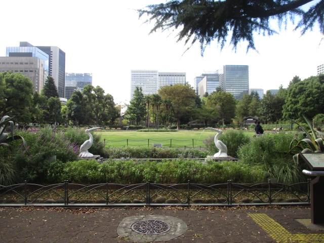 東京メトロ日比谷駅A14出口から地上に上ると日比谷通り沿いにある日比谷公園に着きます。日比谷公園は明治36年に日本初の近代的な洋風公園として誕生しサラリーマンのオアシスとし大噴水、カモメ、ペリカン噴水、第1、第2花壇の多種多様の花で癒やされる公園です。日比谷公会堂、野外音楽堂、松本楼レストラン、図書館などあり広く一日ゆったりのんびりと過ごせました。第1花壇を芝刈りロボットがゆったりと動き回っていました。
