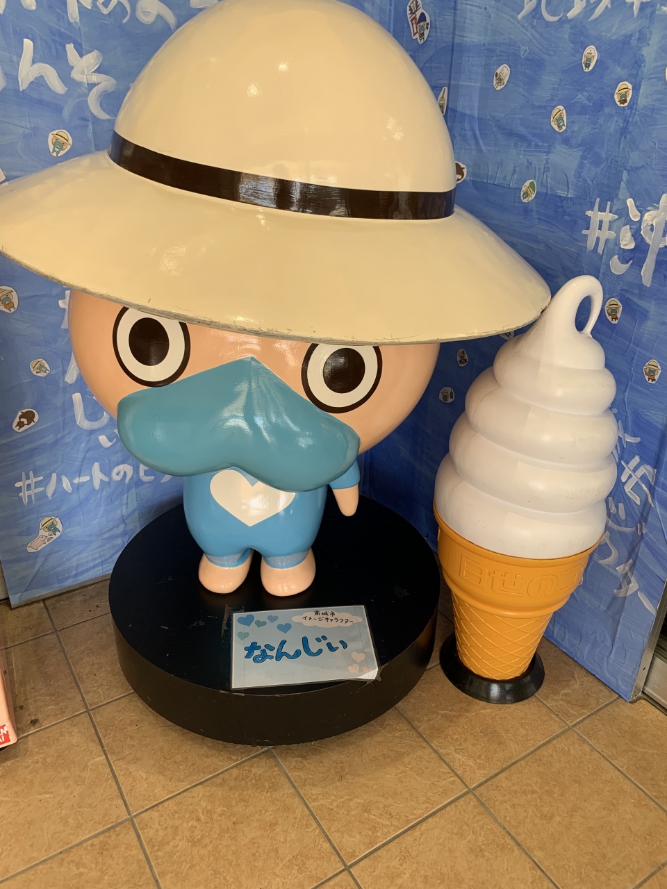 南城市のイメージキャラクター「なんじい」が お出迎えしてくれます。