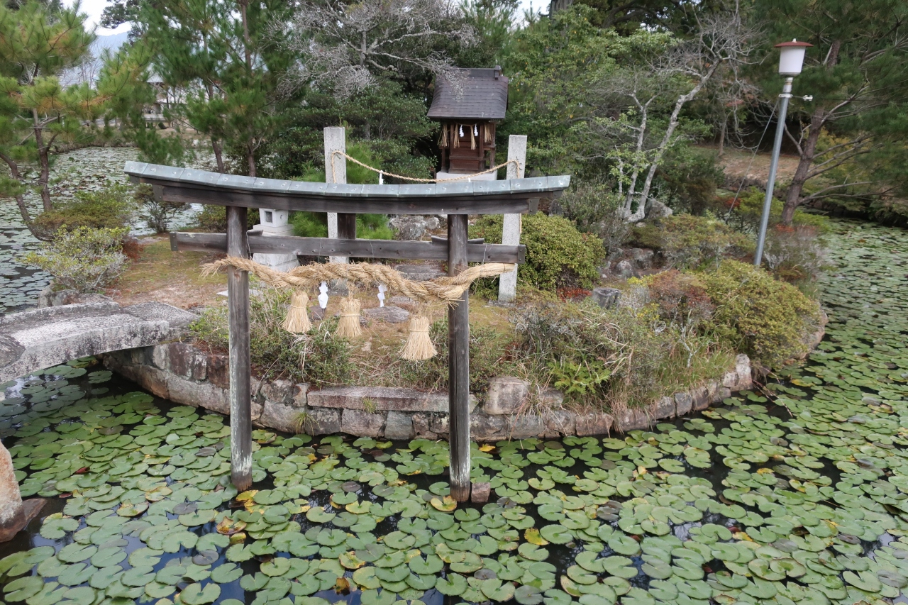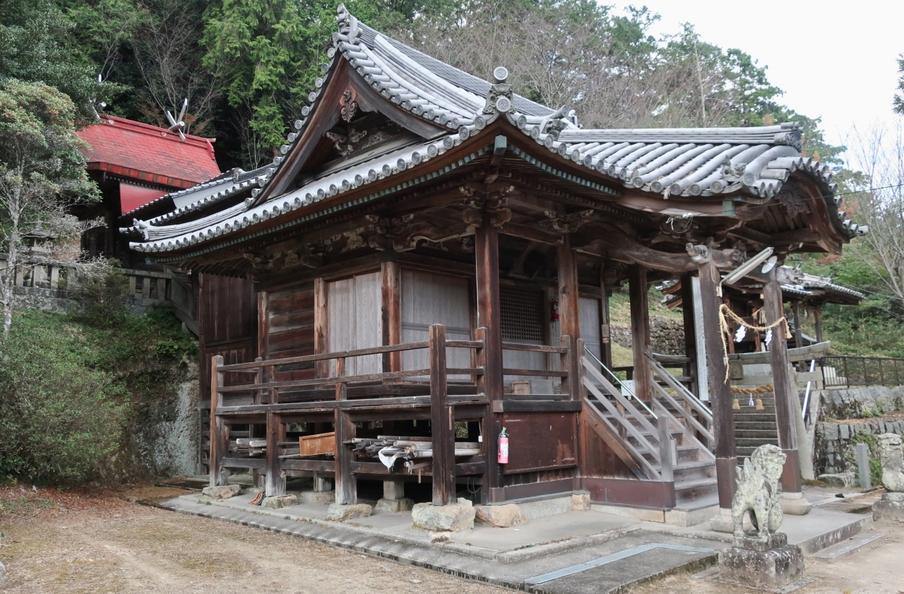 典型的な産土神だと思われるが、境内は地元の人々によってよく手入れされている。参道には池があり摂社が鎮座しているほか、参道の階段も高く、雰囲気はある。変わった社名だが、この神社がある笠岡市北部は古くは甲弩郷と呼ばれており、かつては郷社だったという。創建は少なくとも平安時代にさかのぼることができるらしいが、現在の拝殿は1710(宝永7)年の建築。笠岡市内の拝殿建築では最古であり、市の文化財に指定されている。