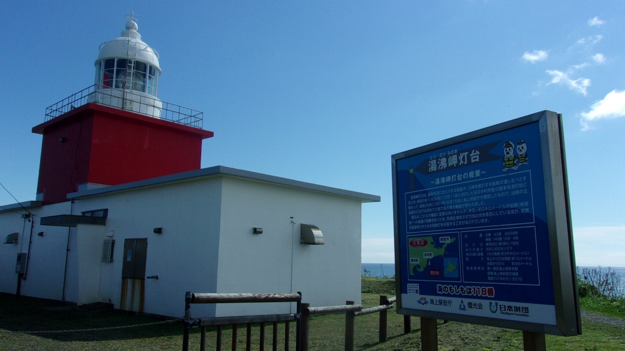 青い海を背景に小さな灯台があるのみのシンプルさ。