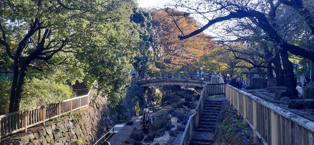 JR王子駅から北区役所に向かう歩道は森の中のような遊歩道として整備され、その遊歩道に接して音無親水公園があります。