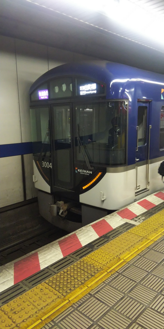 京阪本線は淀屋橋駅から三条駅までの私鉄路線です。今回は淀屋橋駅から寝屋川市駅までを乗車しました。座席が横のロングシートではなく、前向きの1列と2列のシートだったのがありがたかったですね。うまいこと1列シートをゲットできました。