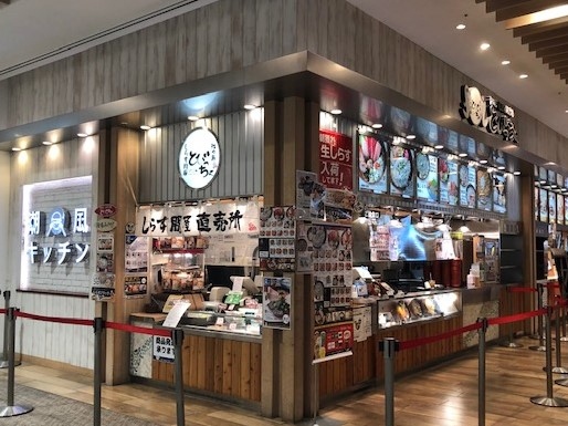 東海道線の辻堂駅直結、テラスモール湘南3階にあるフードコート「潮風キッチン」の中に店舗があります。地元湘南で朝獲れの生しらすも食べられ(天然ものなので、季節や天候によります)、生しらすや釜揚げしらすをたくさん使った海鮮丼が人気です。