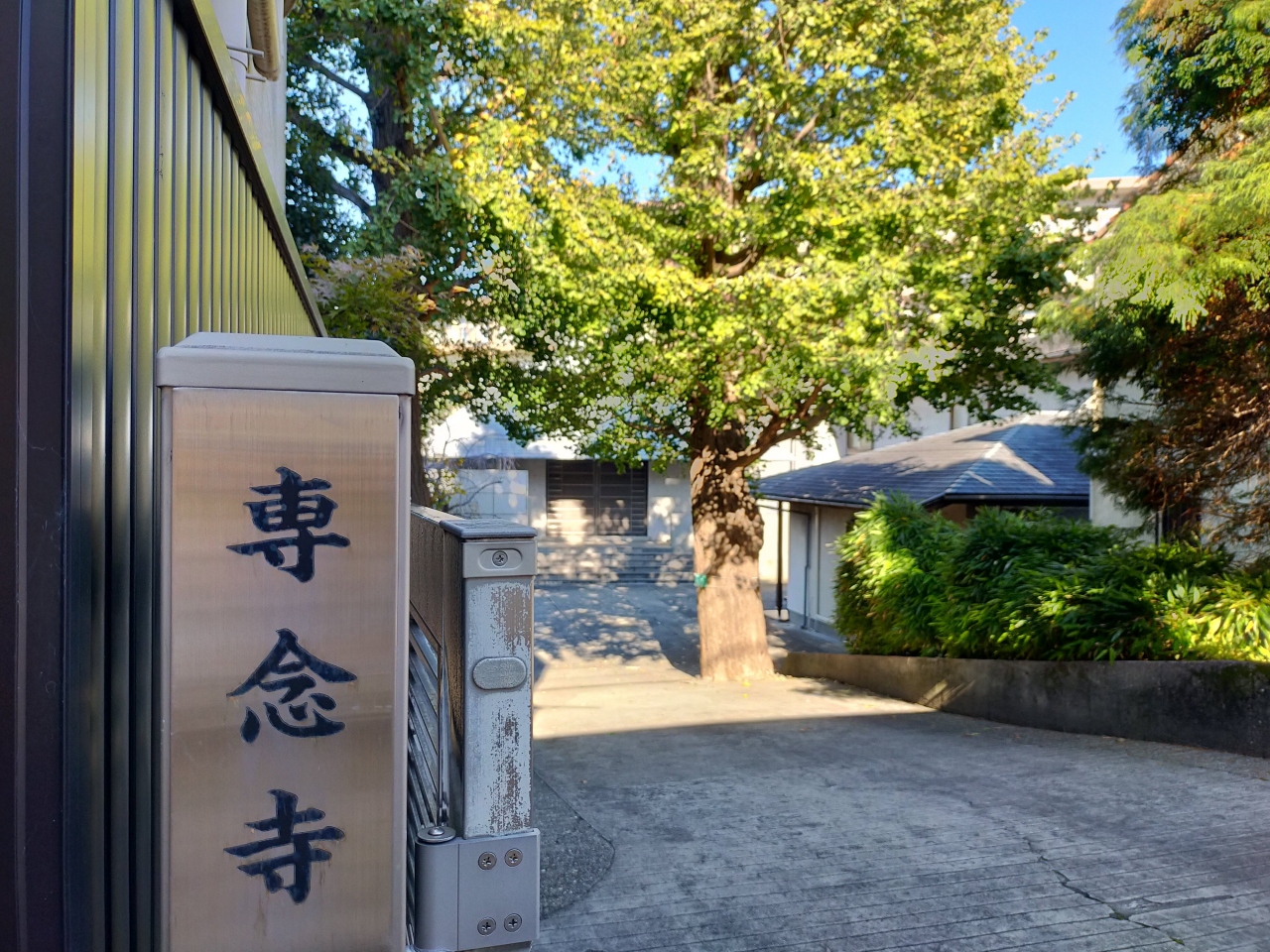 大通り沿いから一本中に入ったところにある為、とても静かです。浄土真宗のお寺です。比較的新しいと思われる本堂がとてもきれいでした。門から本堂まで少し距離があるぐらい、広々とした敷地です。呼び鈴のかわりになる鐘もおかれていました。