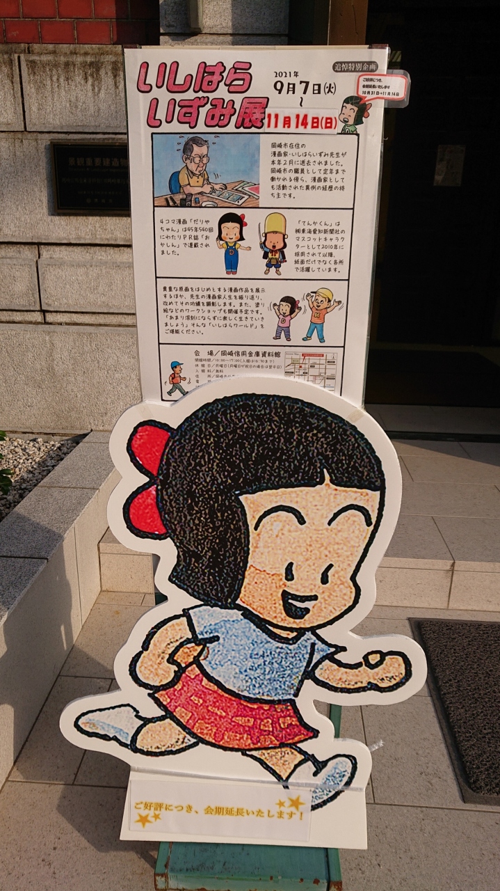 11月上旬に訪問しました。そして、開催されていた、「いしはらいずみ展」を観覧しました。いしはら氏は、公務員として定年まで務めながら、兼業としてマンガ家をされていたとのこと。そして、退職後も含め、45年間も、岡崎信用金庫の広報紙に、マンガ、「だりやちゃん」を連載されてきたとのこと。実際に、マンガの一部や貴重な原画が展示されており、長時間にわたり、興味深く拝見しました。