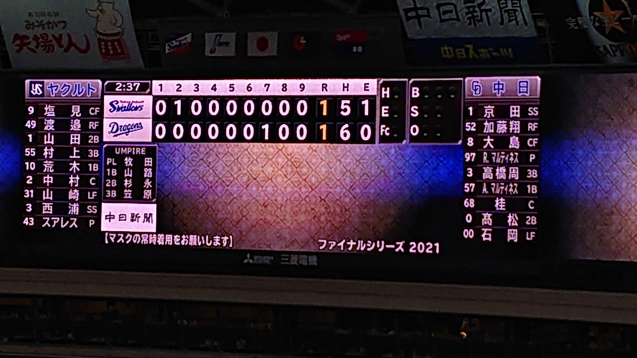 また、試合前に、福留選手2000試合出場表彰式、試合後に、ホーム最終戦セレモニーが行われたことが印象に残りました。