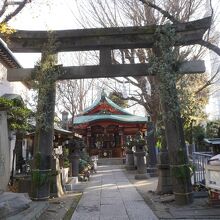 太い柱の石鳥居。石畳の参道からその両側には区の登録文化財に指定されているという石灯籠が並び、なんか歴史を感じる構えです。