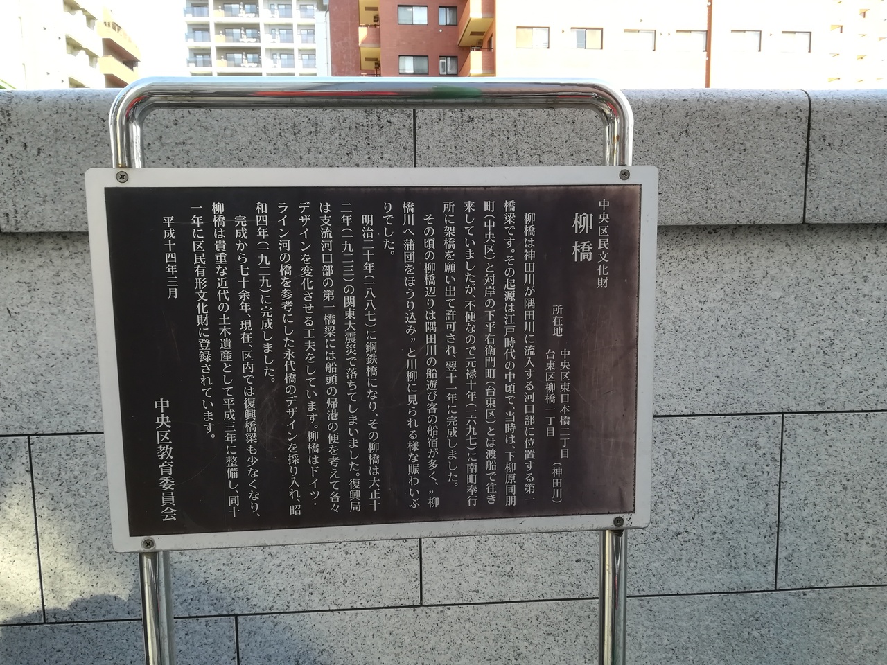 階段降りますと柳橋の案内板が掲げてあります。そして柳橋から見る景色も素敵です。