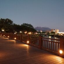 夜になると灯籠と欄干には明かりが灯り、幻想的。さらに雰囲気がよくなります。