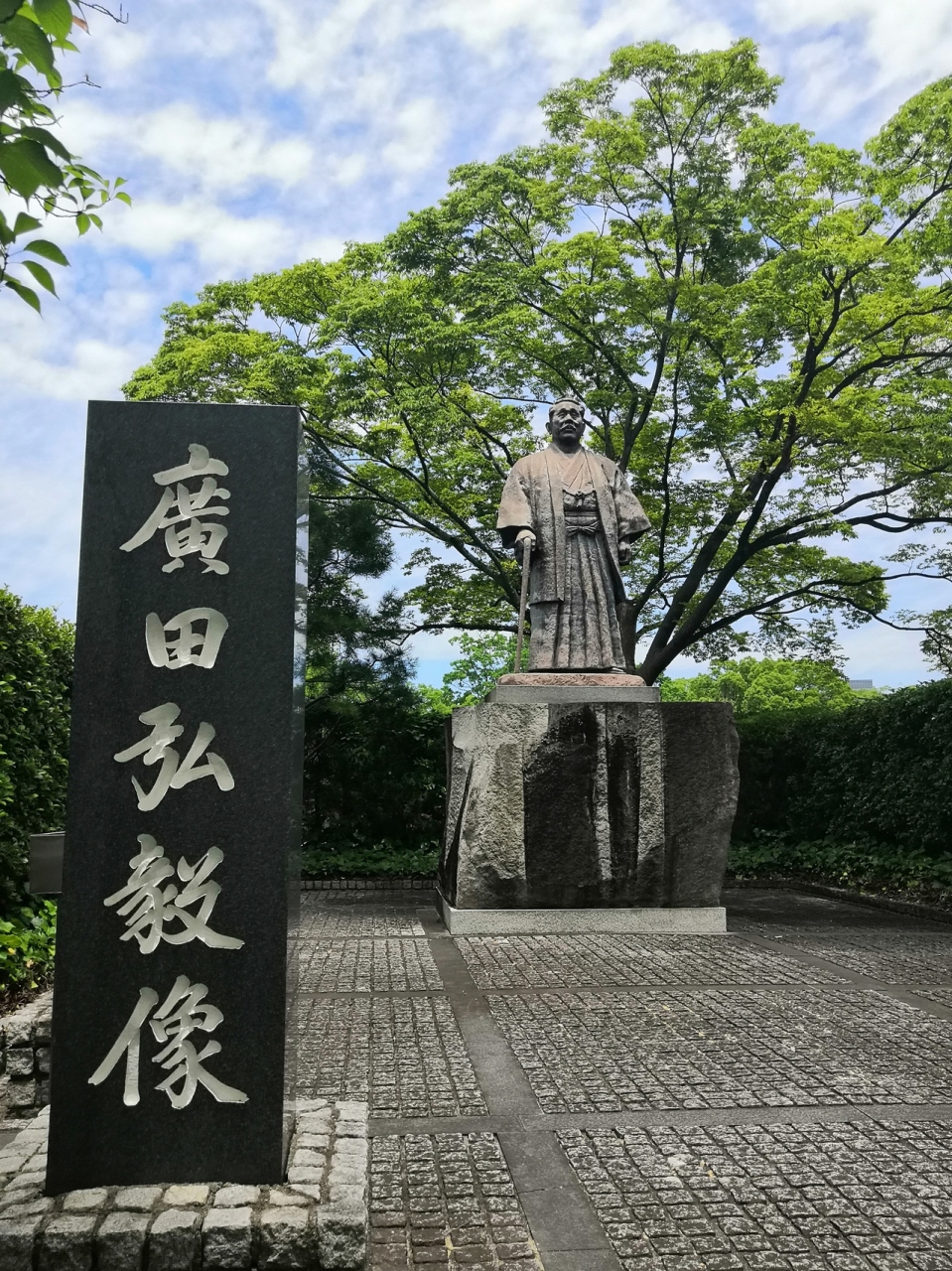 福岡城跡に隣接する市美術館の敷地内にあります。福岡県出身者で初めて総理大臣になった人物ですが、東京裁判でA級戦犯として有罪判決を受け処刑されました。賛否があるとはいえ、日本も受け入れた裁判で処刑された人物の像は不要です。