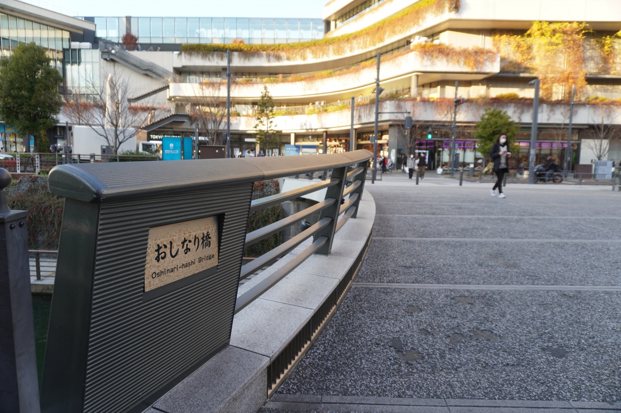 おしなり橋は、スカイツリーのほぼ真南。北十間川に架かる橋なんですが、橋へ向かう坂はきれいな石段となった人道橋。橋の幅が広いのでちょっとしたスペースも感じます。一帯と一緒になって公園的な雰囲気もあるような気がします。