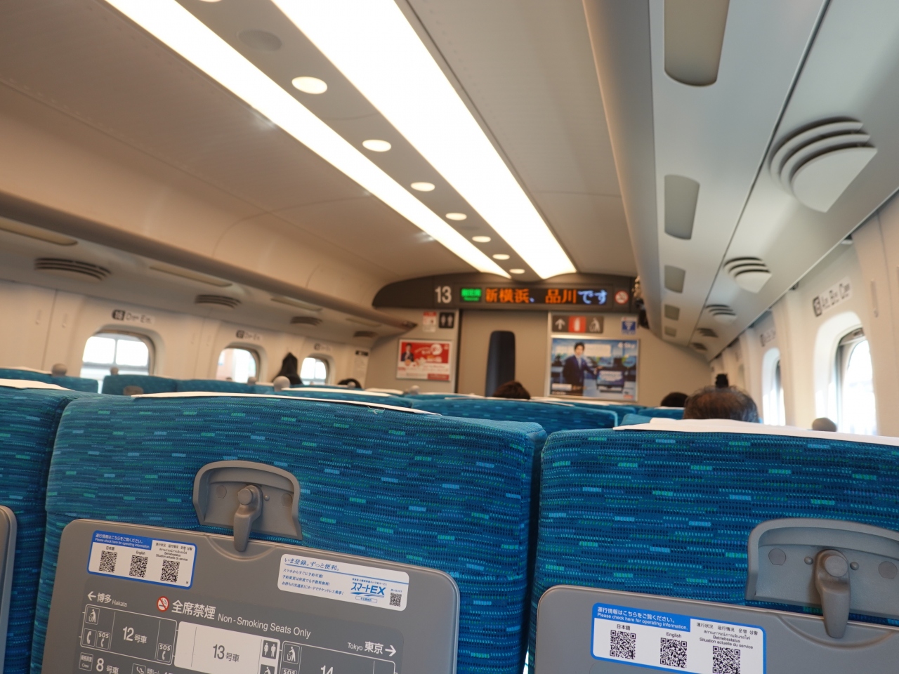 東海地方を旅した際、浜松駅から品川駅までひかり号に乗車しました。浜松駅は1時間に1本、ひかり号が停車し、品川までの乗車時間は約1時間20分でした。平日昼間だったので、指定席の乗車率は50%以下ほどで空いており大変快適でした。