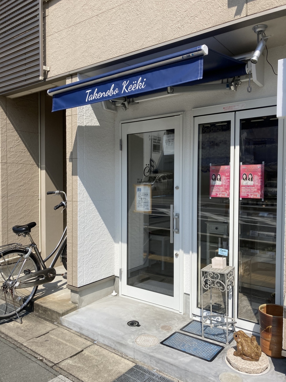 滋賀県大津市の石山駅から徒歩3分くらいの所にあるケーキ屋さん。ちいさなケーキ屋さんなので、現在は1組ずつ入るように書かれています。