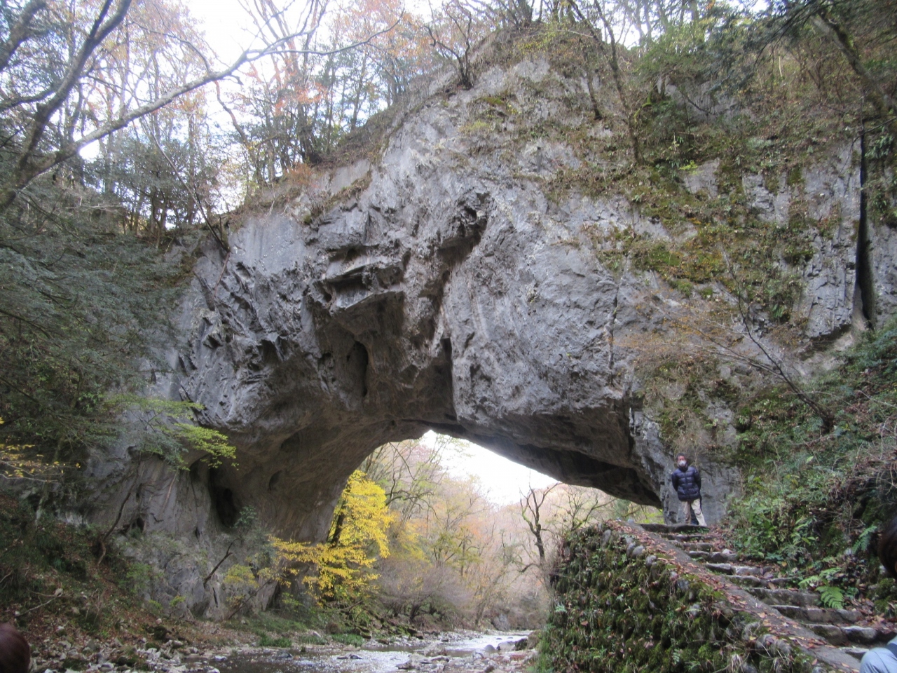 帝釈峡の雄橋(おんばし)は石灰岩が侵食され長さ90メートル幅19メートル高さ40メートルの天然橋です。世界3大天然橋の一つと言われているそうです。国の天然記念物に指定されている雄橋は近くで見ると圧倒的な存在感があります。駐車場からは渓谷沿いにぶらぶら歩いて20分位です。一見の価値ありです。