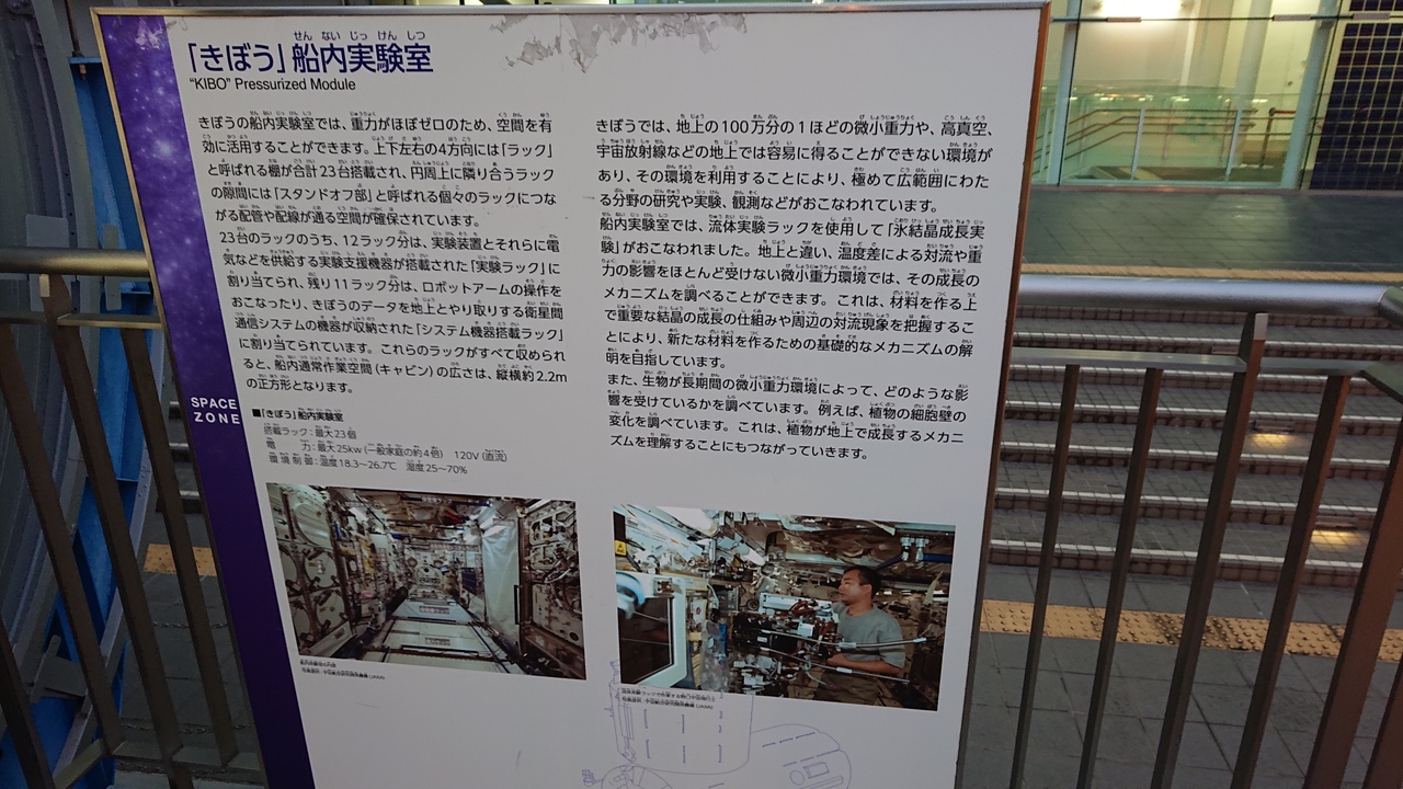 10月下旬の週末に訪問し、「きぼう」の構造試験モデル展示を鑑賞しました。「きぼう」とは、国際宇宙ステーションの日本の実験棟。スケールは、実物と同じだとのこと。したがって、宇宙での実験がどのような環境で行われているのか、イメージしやすかったです。