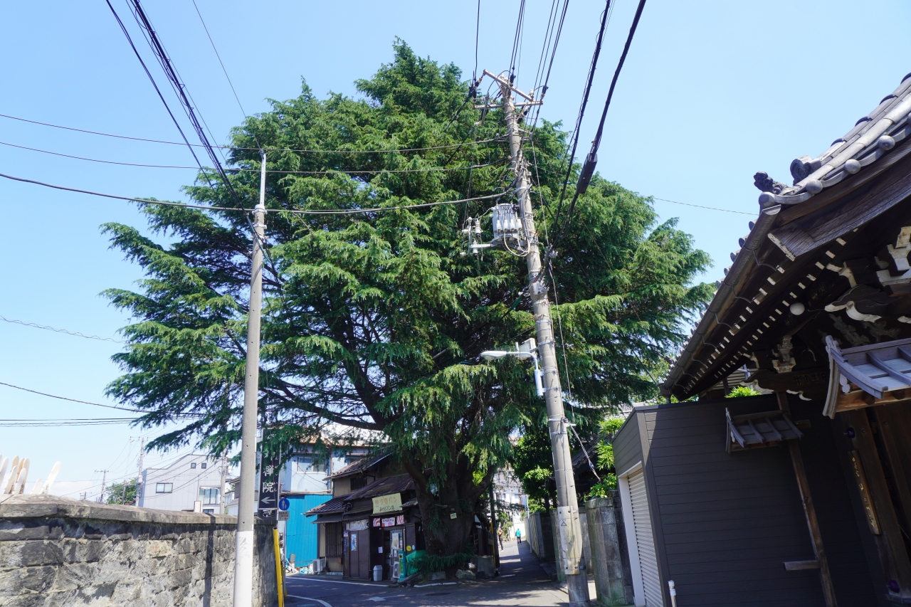 谷中のヒマラヤ杉は、隣りのみかどパン店を覆うように立っていて、その姿はこの辺りの名物となっています。以前、テレビ番組でみかどパンとヒマラヤ杉とどっちが古いのかをやっていましたが、答えはみかどパン。みかどパンの先代が鉢植えだったヒマラヤ杉をここに地植えしたということでした。いろんな歴史があるものです。