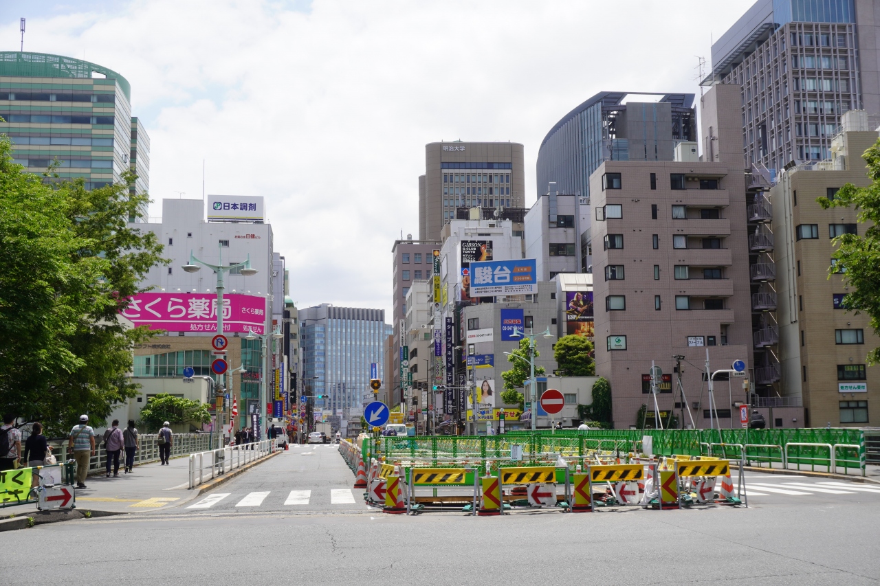 お茶の水橋は、神田川に架かる橋。明大通りを通して、明大通りは北側で東西に走る外堀通りとぶつかります。ということで、この橋から明大の方に下って行くので御茶ノ水の出発点みたいな位置づけかな。