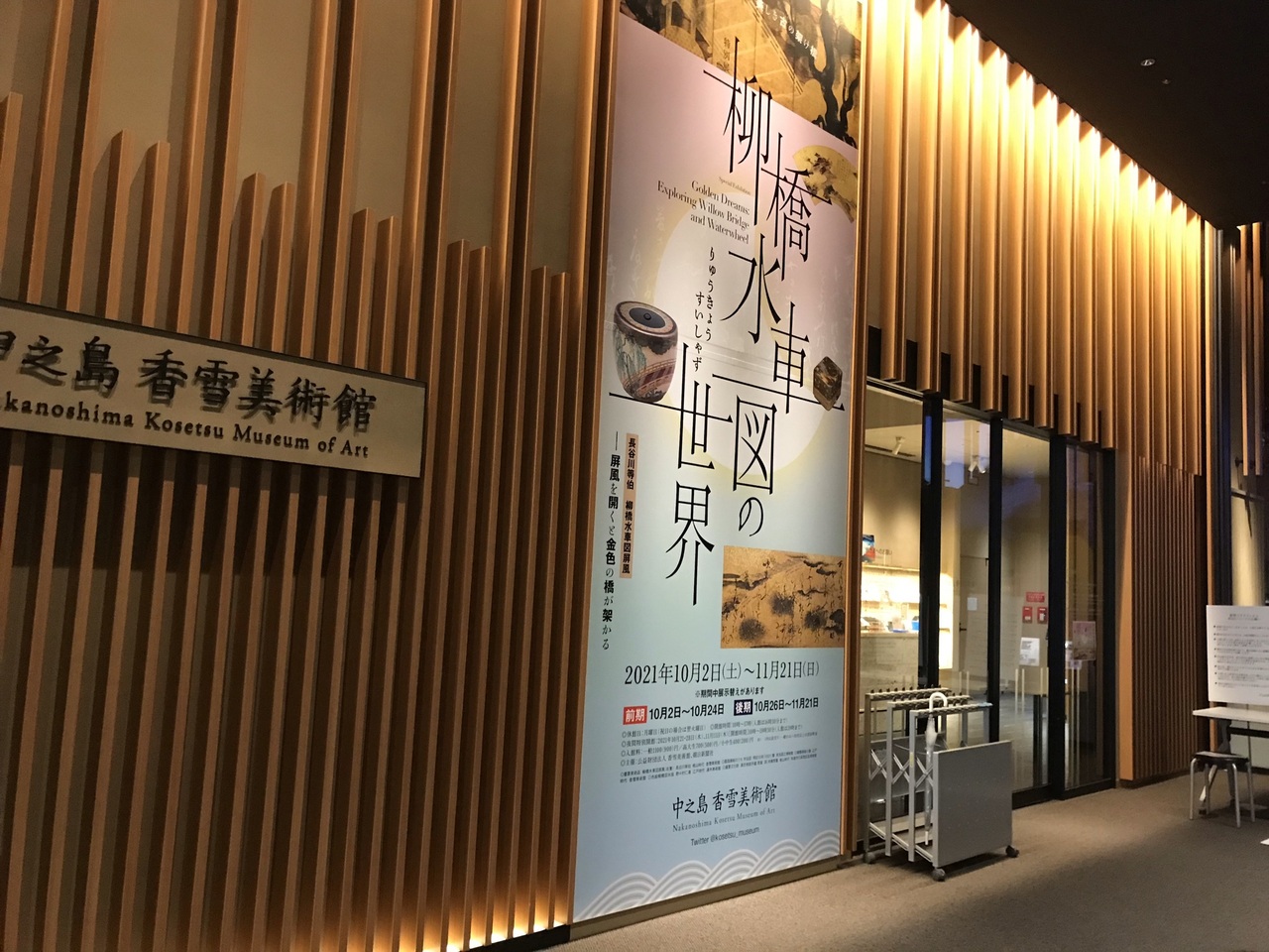 川を渡ってすぐにあるノッポの中之島フェスティバルタワーウエスト内にあります。2021ねん10月は、「柳橋水車図の世界」という催しをしていました。入るとすぐに、「玄庵」という茶室らしきものが、おそらく実物大で復元されていて迫力がありました。