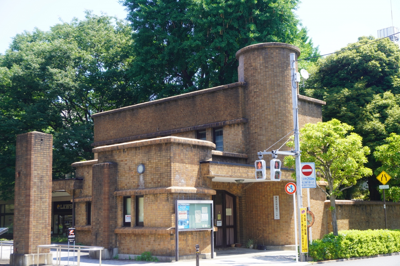 東京大学広報センターは、東大病院の方に向かう龍岡門のところ。茶色の総タイル張りの外観が特徴的な建物は、大正15年に建てられた東京帝国大学医学部附属医院、急病者受付所を改装したもの。今は東京都選定歴史的建造物にも選定されています。